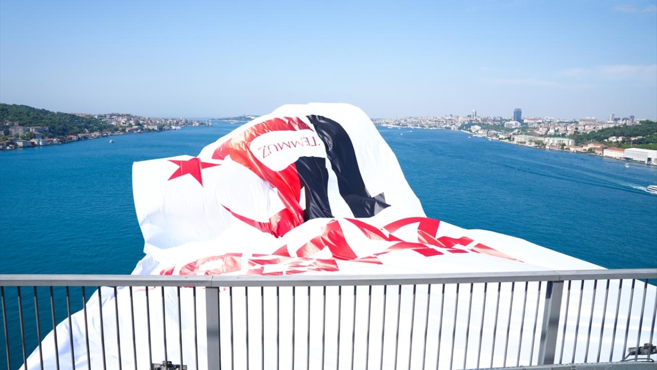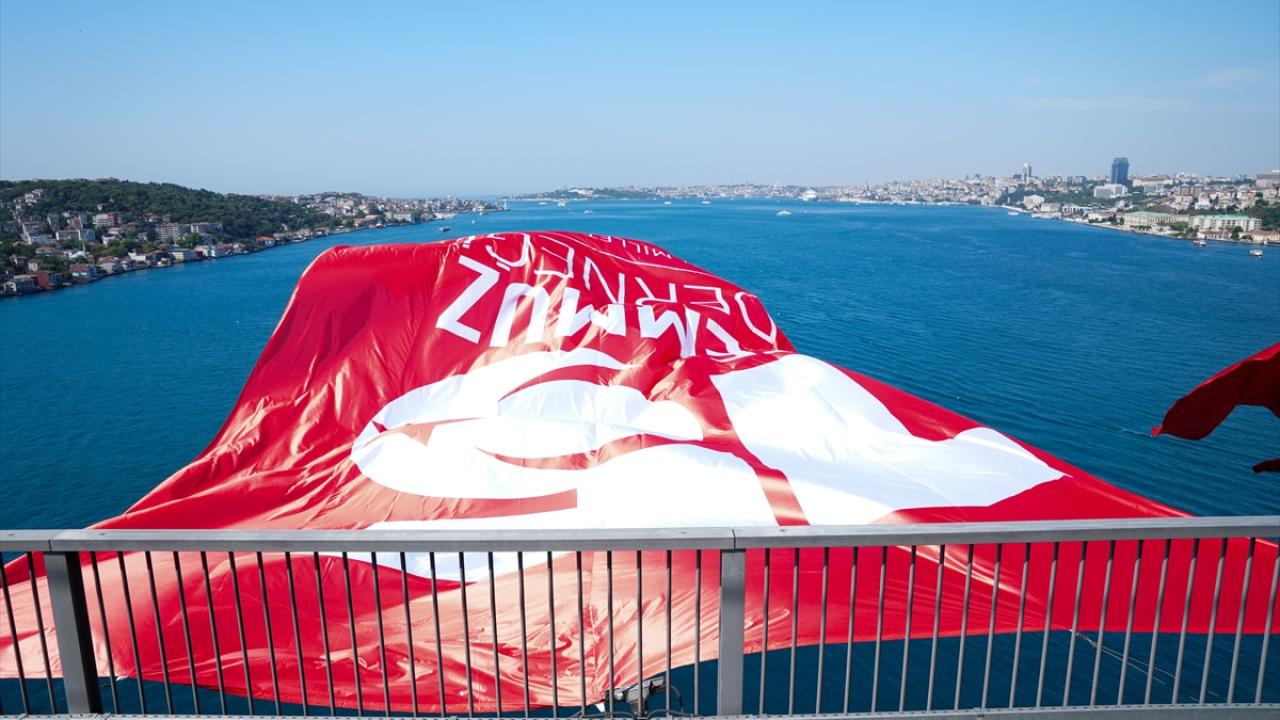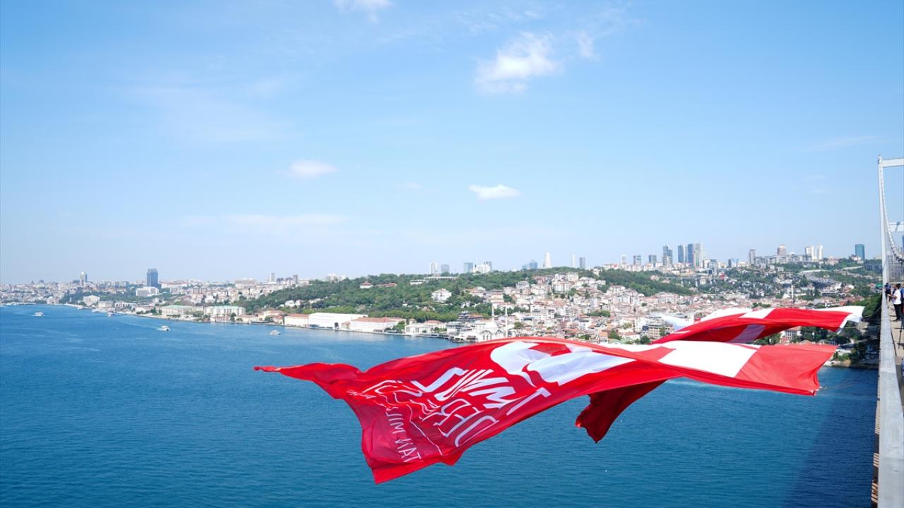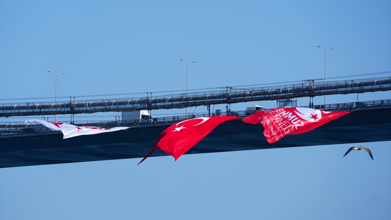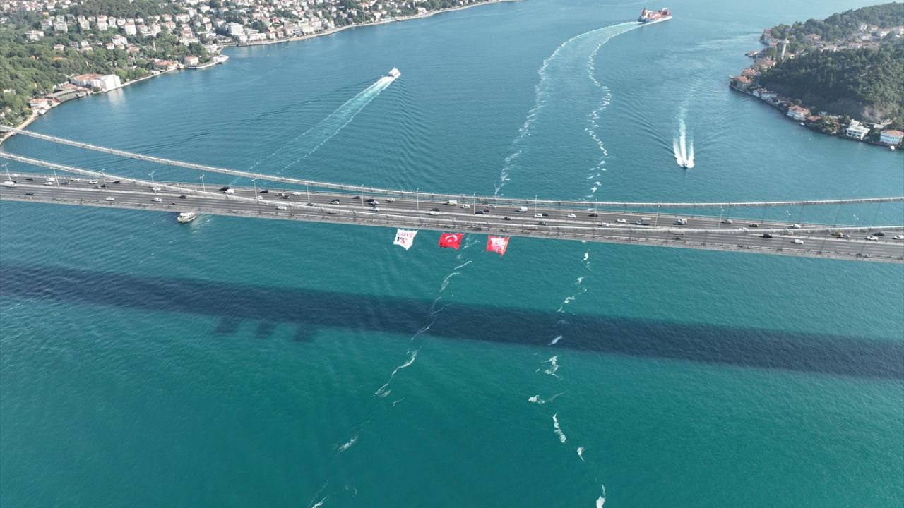 Görevliler, saat 06.00`da Yavuz Sultan Selim Köprüsü`ne, saat 08.00`de Fatih Sultan Mehmet Köprüsü`ne, saat 10.00`da ise 15 Temmuz Şehitler Köprüsü`ne 18 metre uzunluğunda 12 metre genişliğinde Türk bayrağı astı.