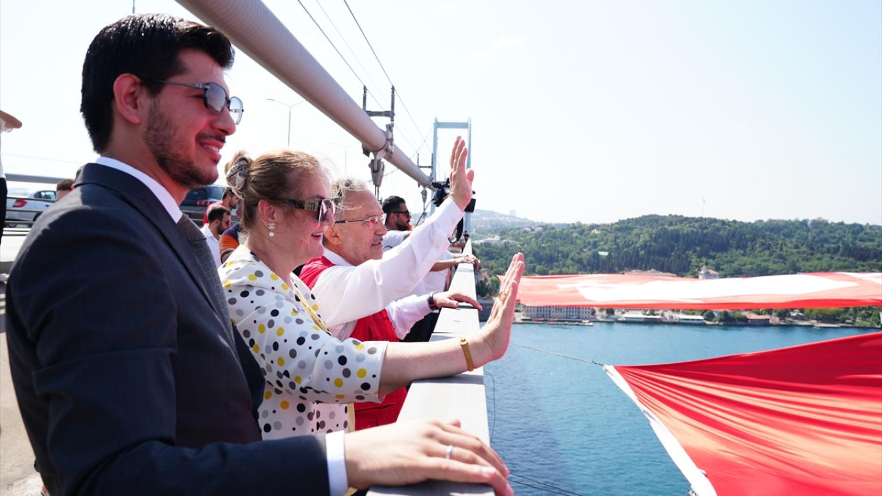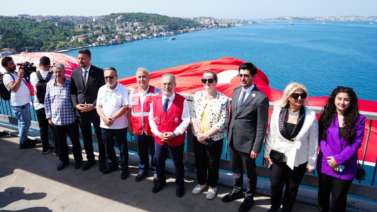 15 Temmuz Şehitler Köprüsü`ne bayrak asımı sırasında İstanbul Vali Yardımcısı Özlem Bozkurt Gevrek, 15 Temmuz Derneği Başkanı İsmail Hakkı Turunç ve 15 Temmuz şehitlerinin yakınları da hazır bulundu.