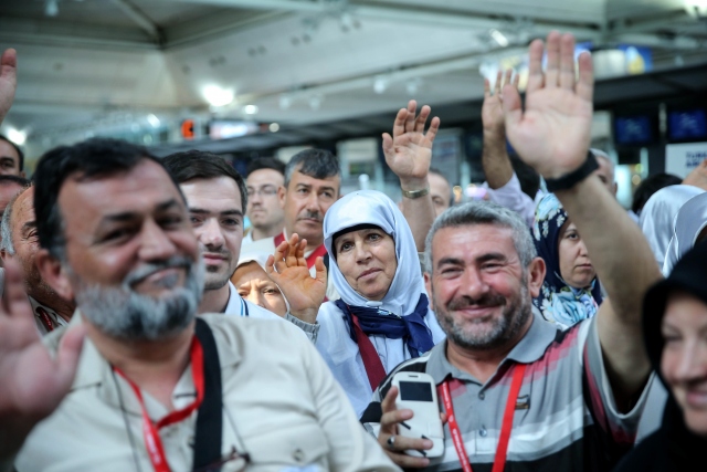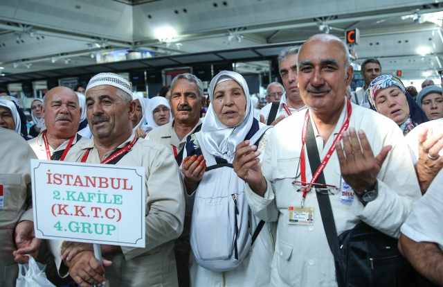 Diyanet İşleri Başkanlığının organizasyonunda kutsal topraklara giden ilk Hac kafilesi, Atatürk Havalimanı'ndan uğurlandı.