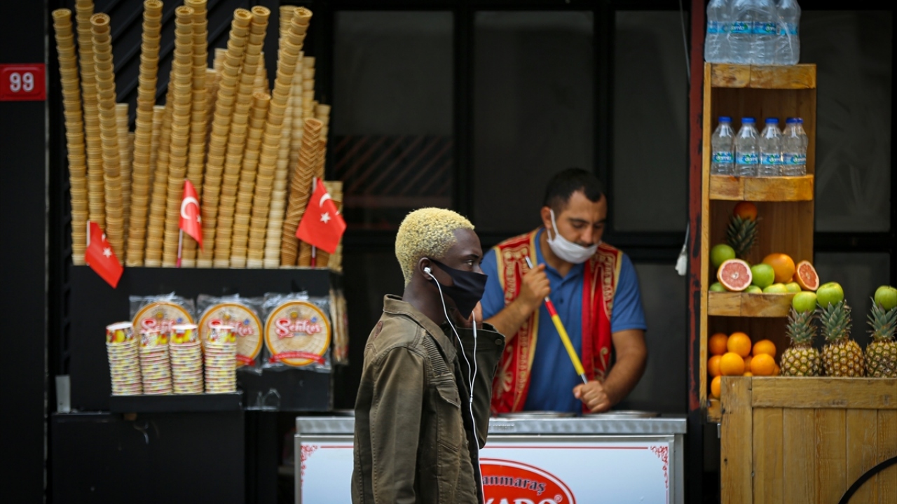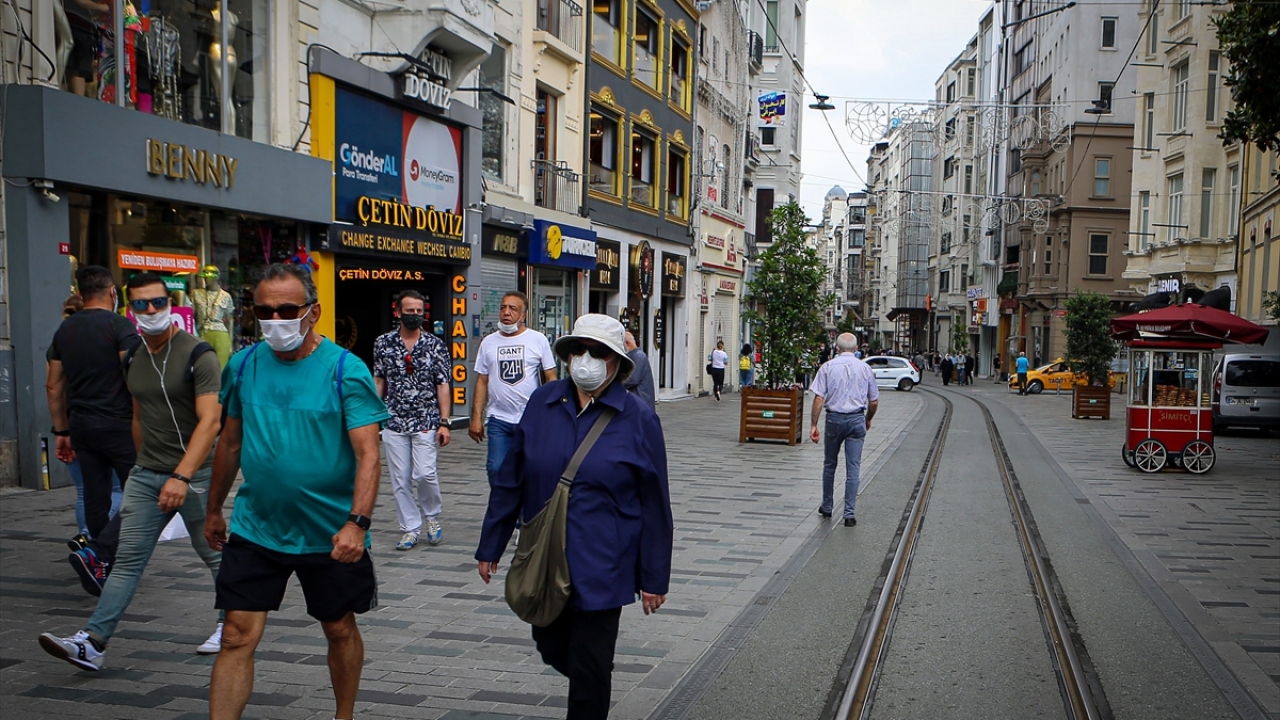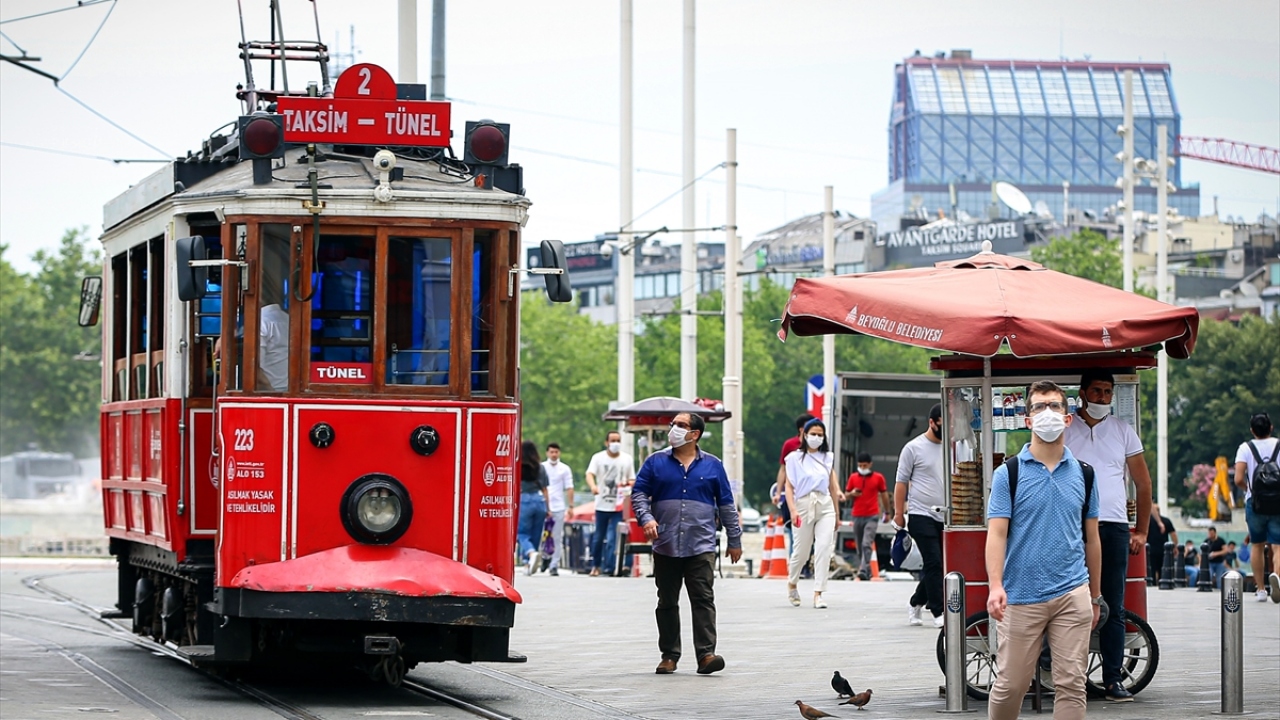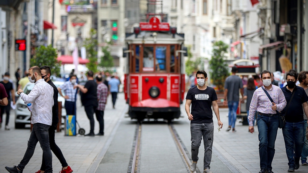 İstanbulluların yeni tip koronavirüs (Covid-19) tedbirleri kapsamında getirilen açık alanlarda maske takma zorunluluğuna Taksim Meydanı ve İstiklal Caddesi civarında uyduğu görüldü.