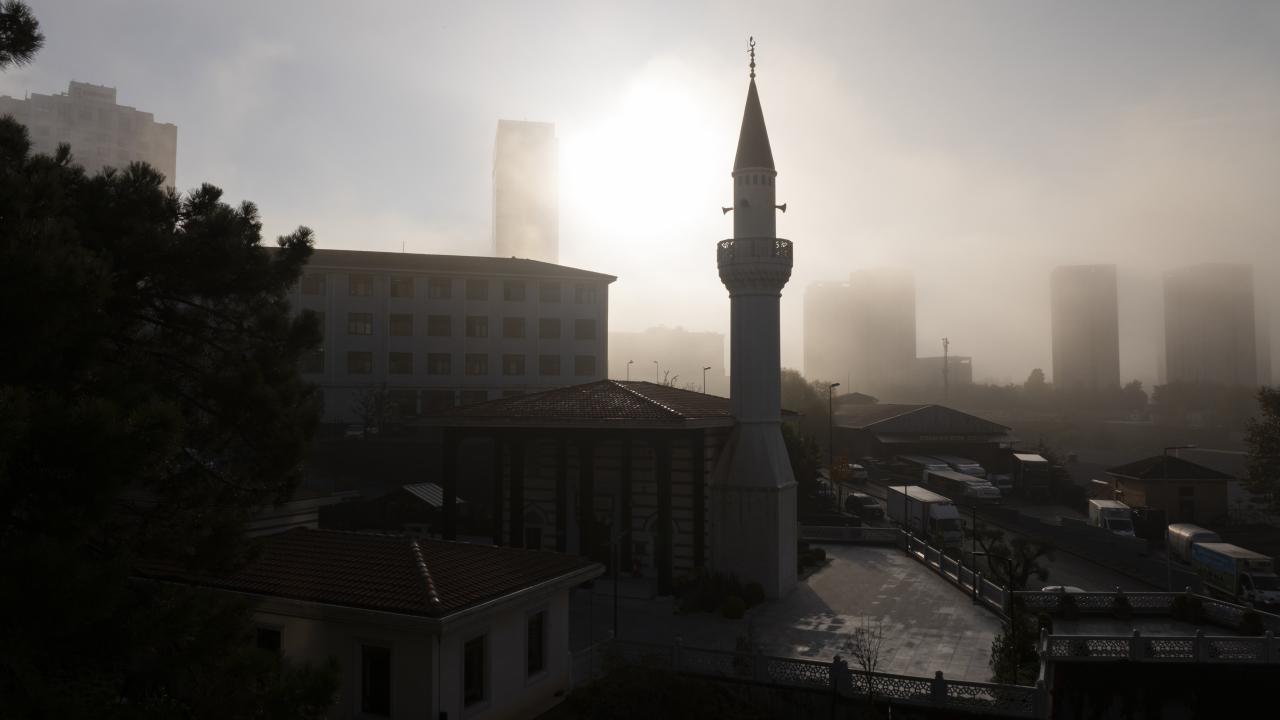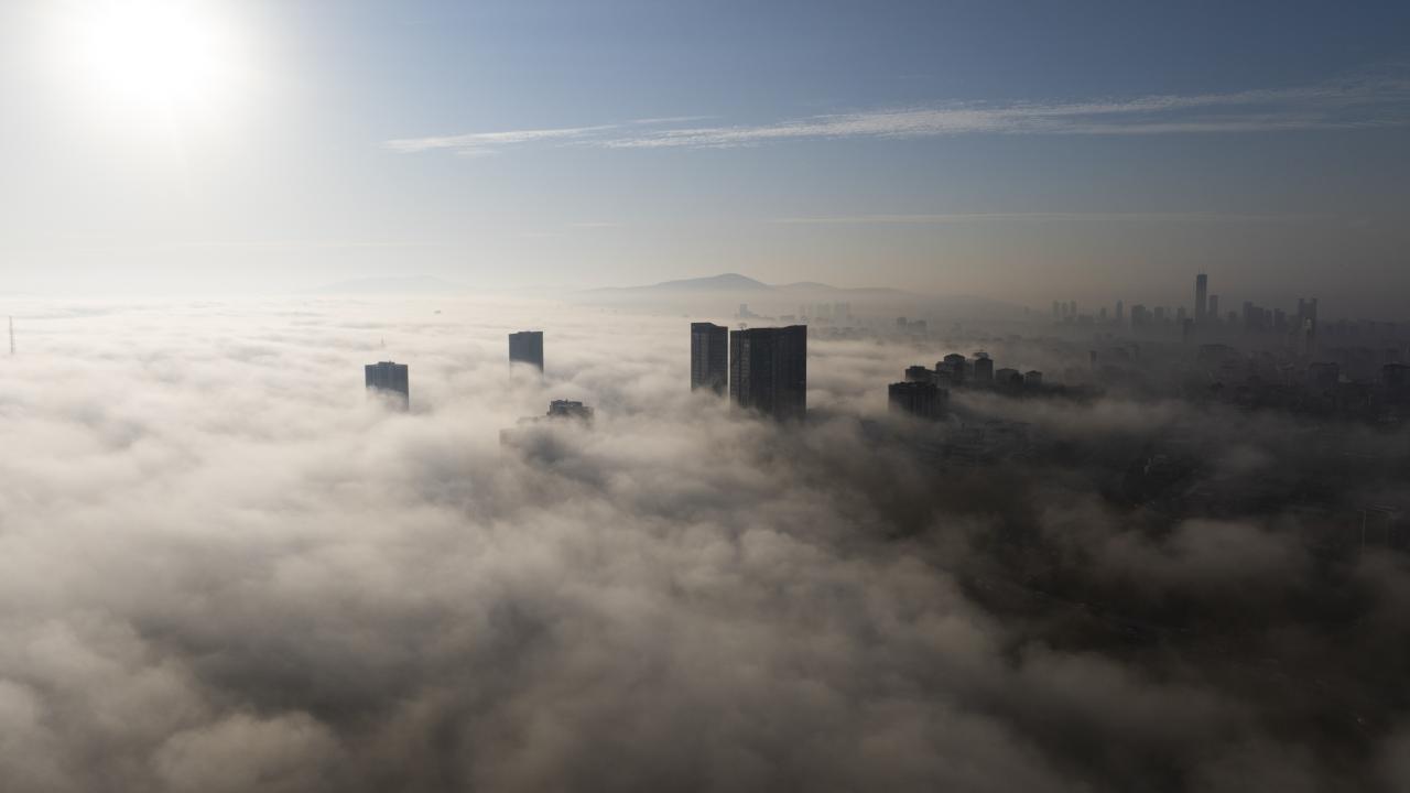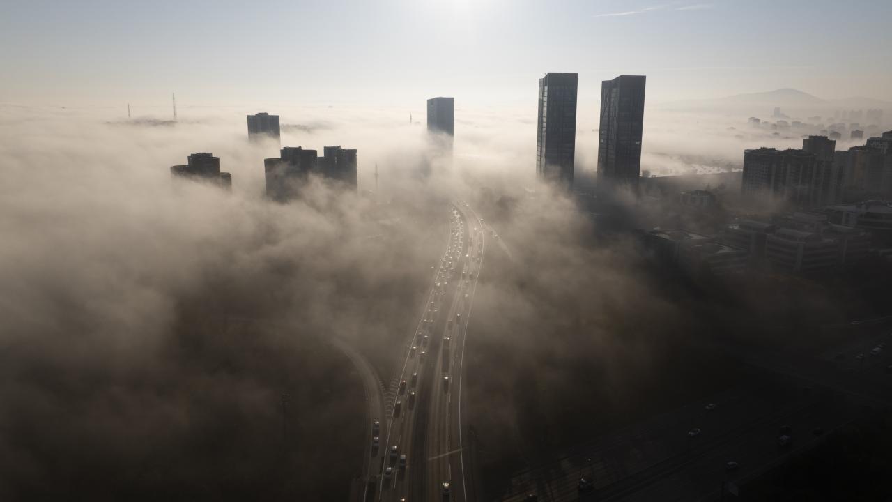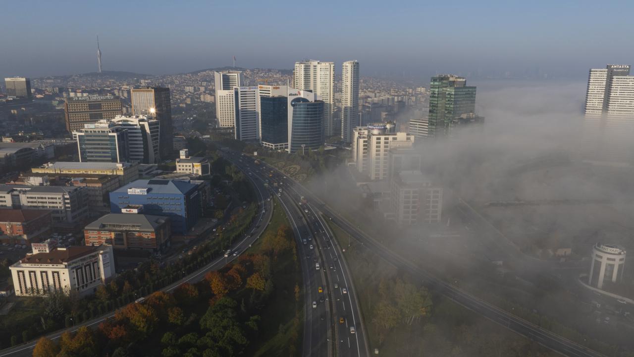 Ümraniye`de yoğun sis nedeniyle plaza ve gökdelenler gözden kayboldu.