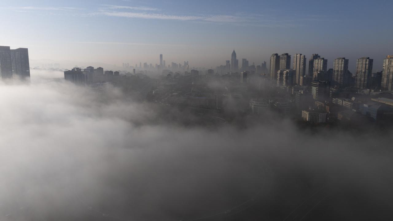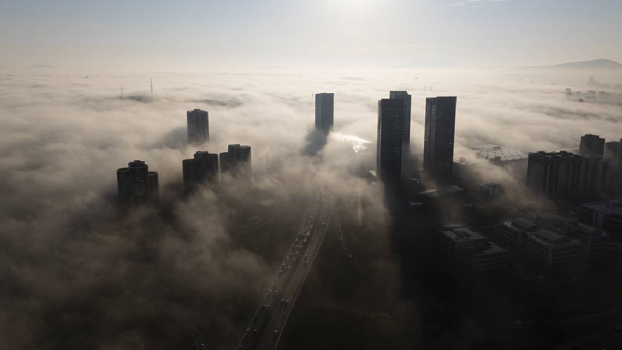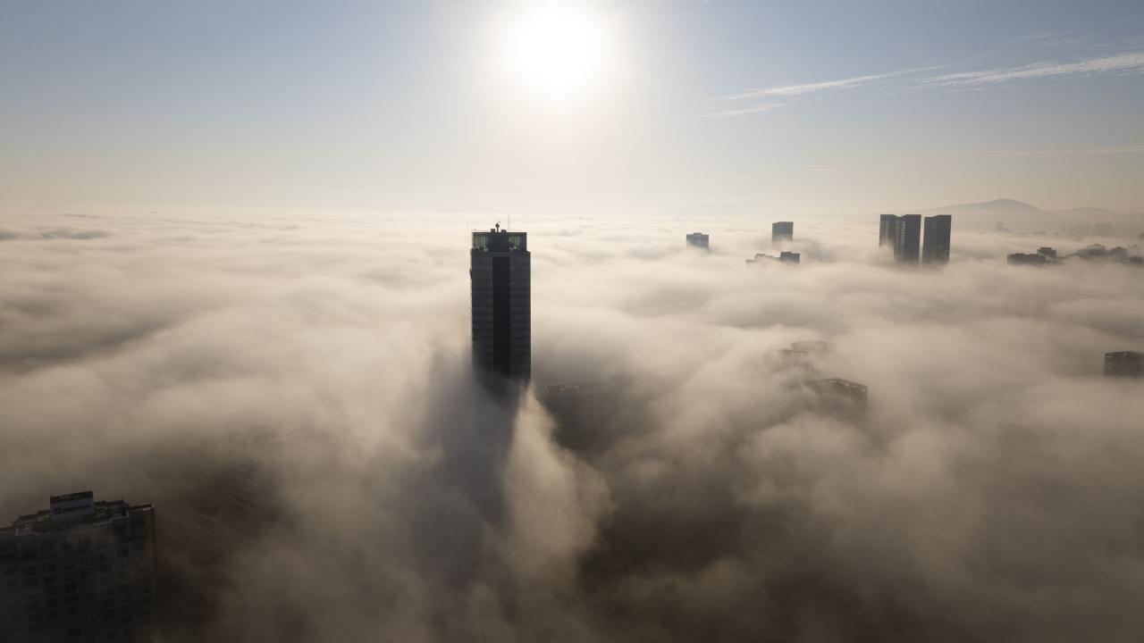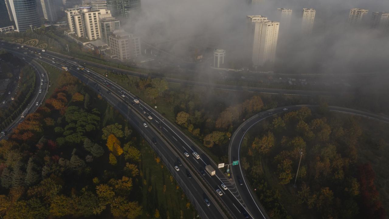 Ümraniye`de yoğun sis nedeniyle plaza ve gökdelenler gözden kayboldu.
