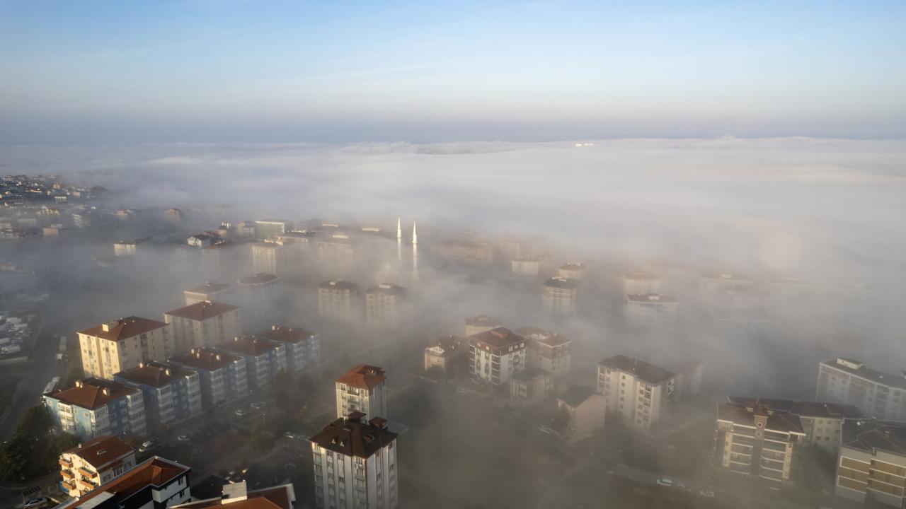 Silivri`de ilçe merkezinde etkili olan sis görüş mesafesini kısıtladı. İlçedeki bazı yapılan sis bulutlarının altında kaldı.