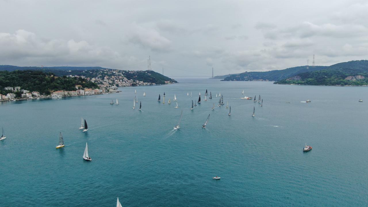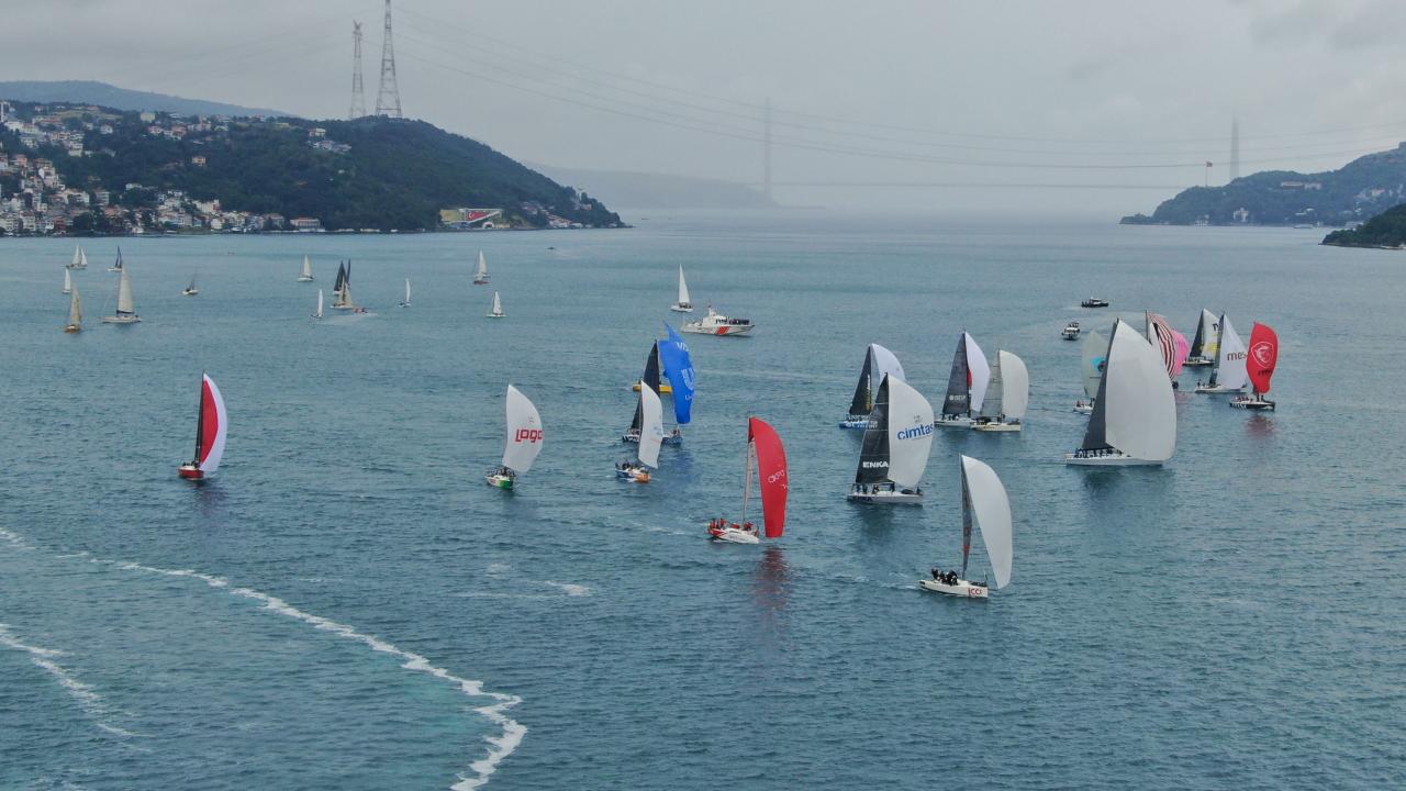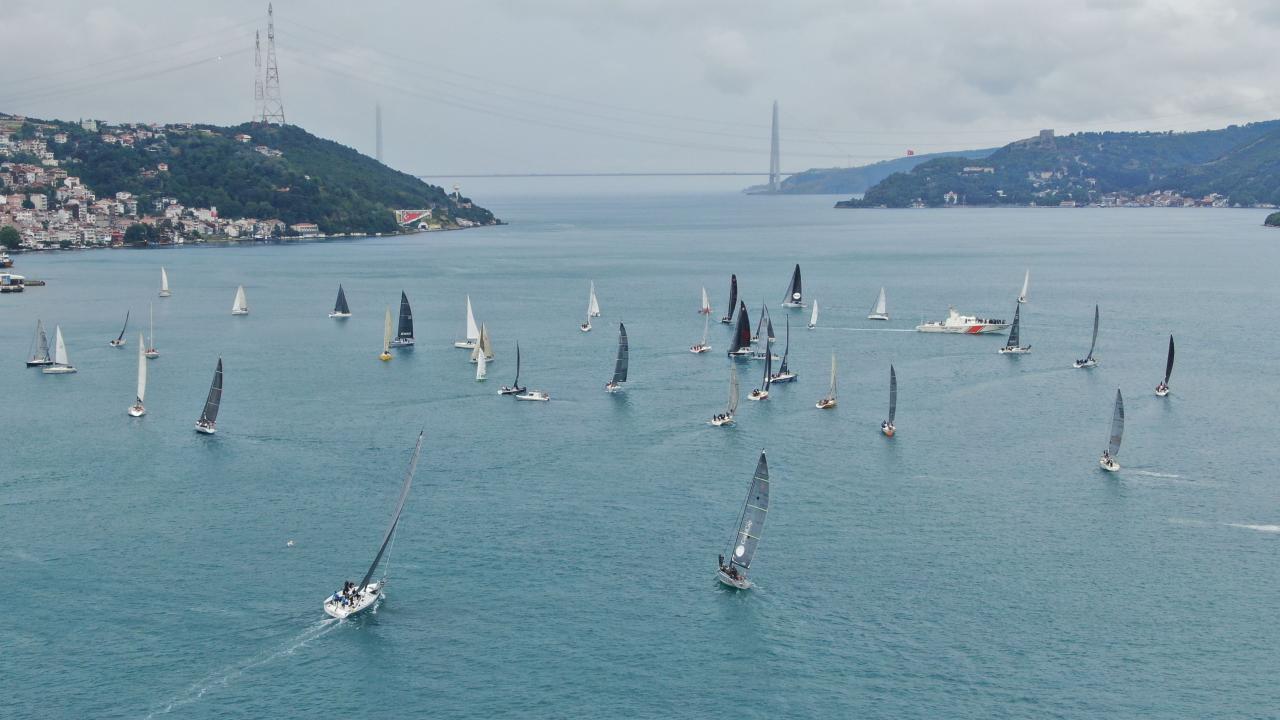 Yelkenliler Büyükdere`den start alarak İstanbul Boğazı`nı kat ederek Dolmabahçe Sarayı önüne ulaşmaya çalıştı.