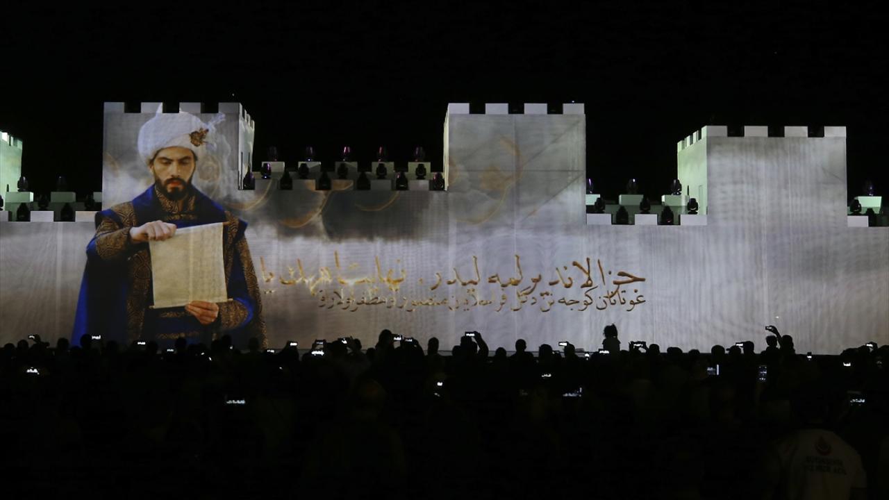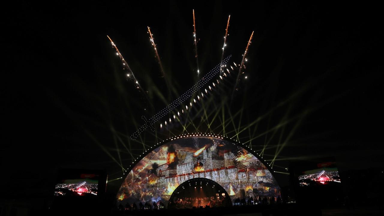 İstanbul`un Fethi`nin 565. yılı kutlamaları kapsamında Haliç Kongre Merkezi Sahili`ndeki alanda gerçekleştirilen etkinlikte kutlamalar için hazırlanan özel bir video mapping, ışık, su ve lazerin birlikte kullanıldığı Fetih Gösterisi gerçekleştirildi. (Arşiv-29.05.2018)
