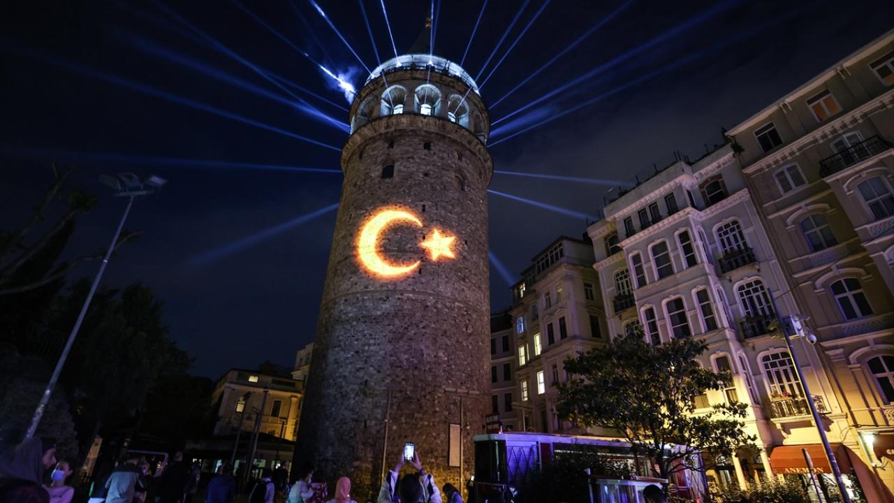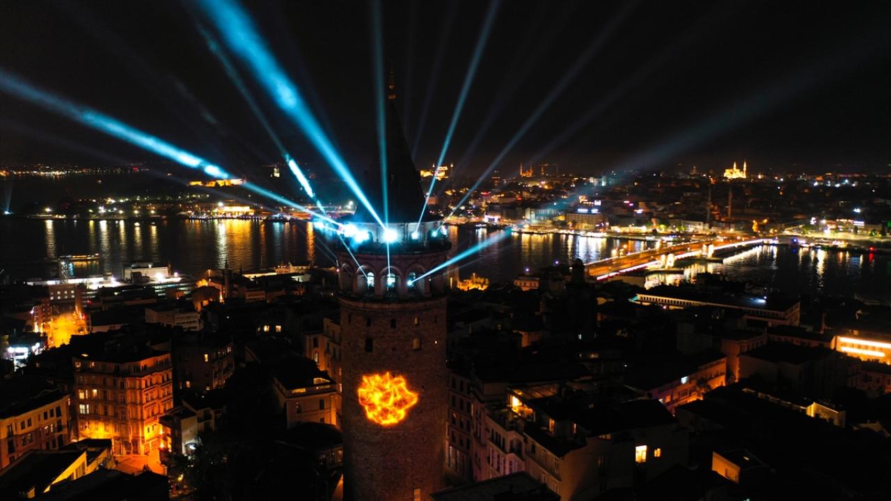 Etkinlik kapsamında Galata Kulesi`nde ışık ve video haritalama (mapping) teknolojisiyle gösteri gerçekleştirildi. (Arşiv-