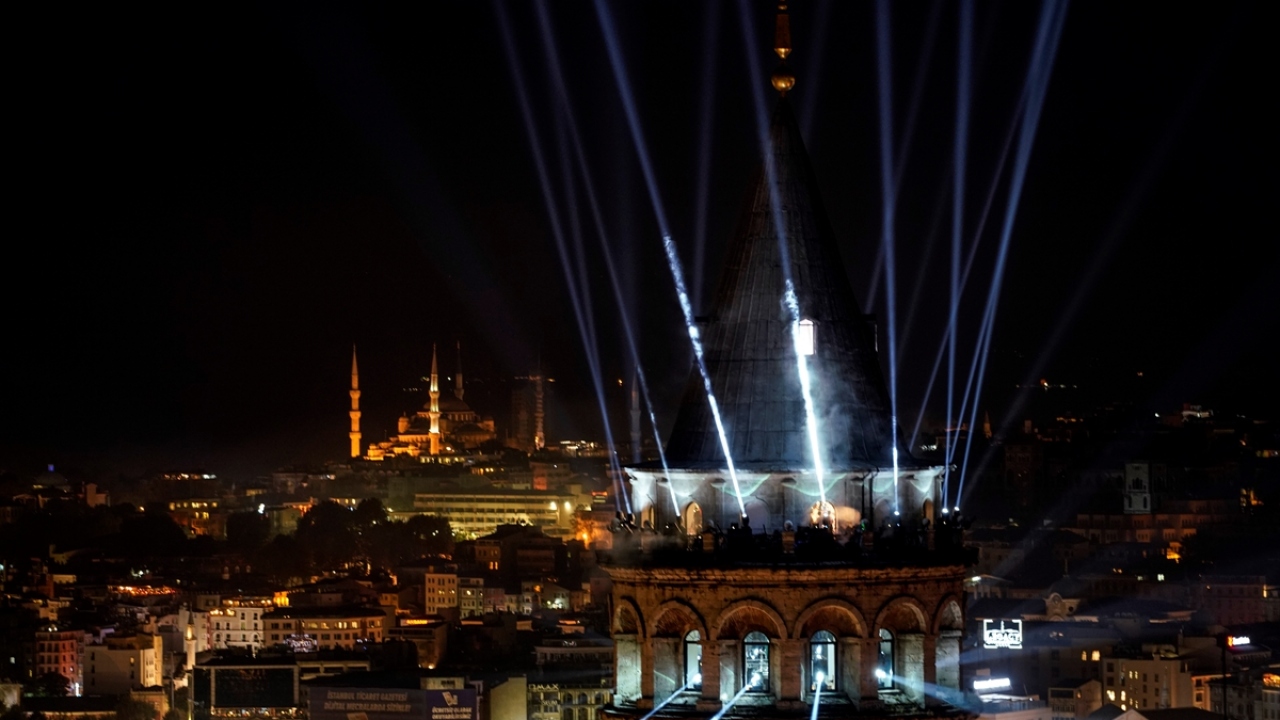 Restorasyonda olan İstanbul’un simgelerinden Galata Kulesi, video mapping ve ışık gösterisi eşliğinde gerçekleştirilen törenle ziyarete açıldı.