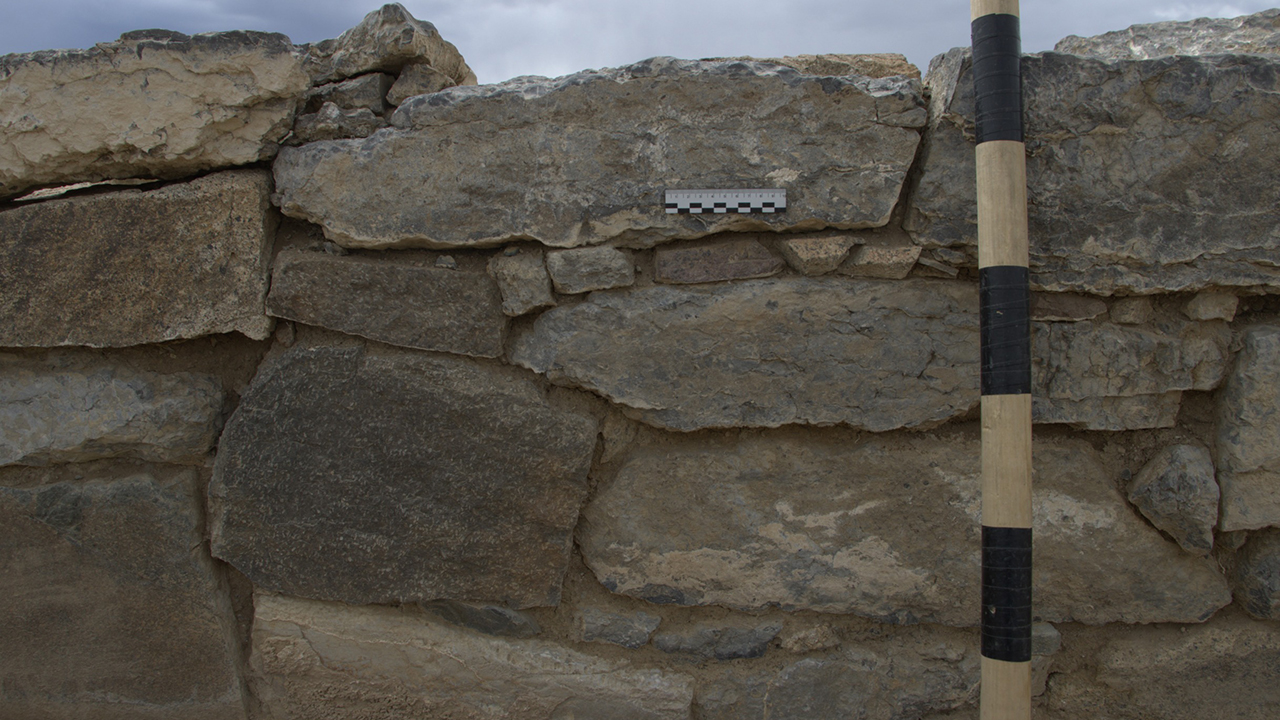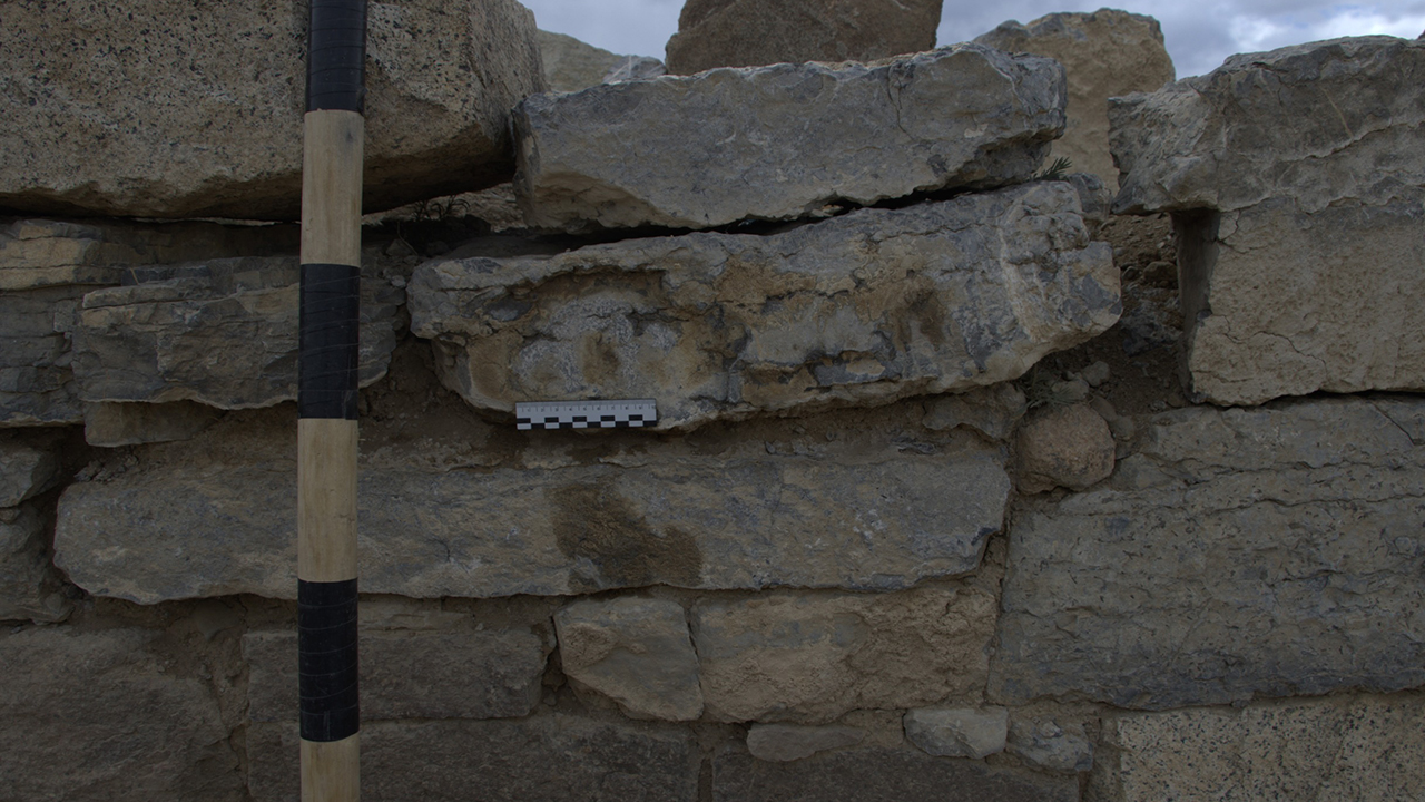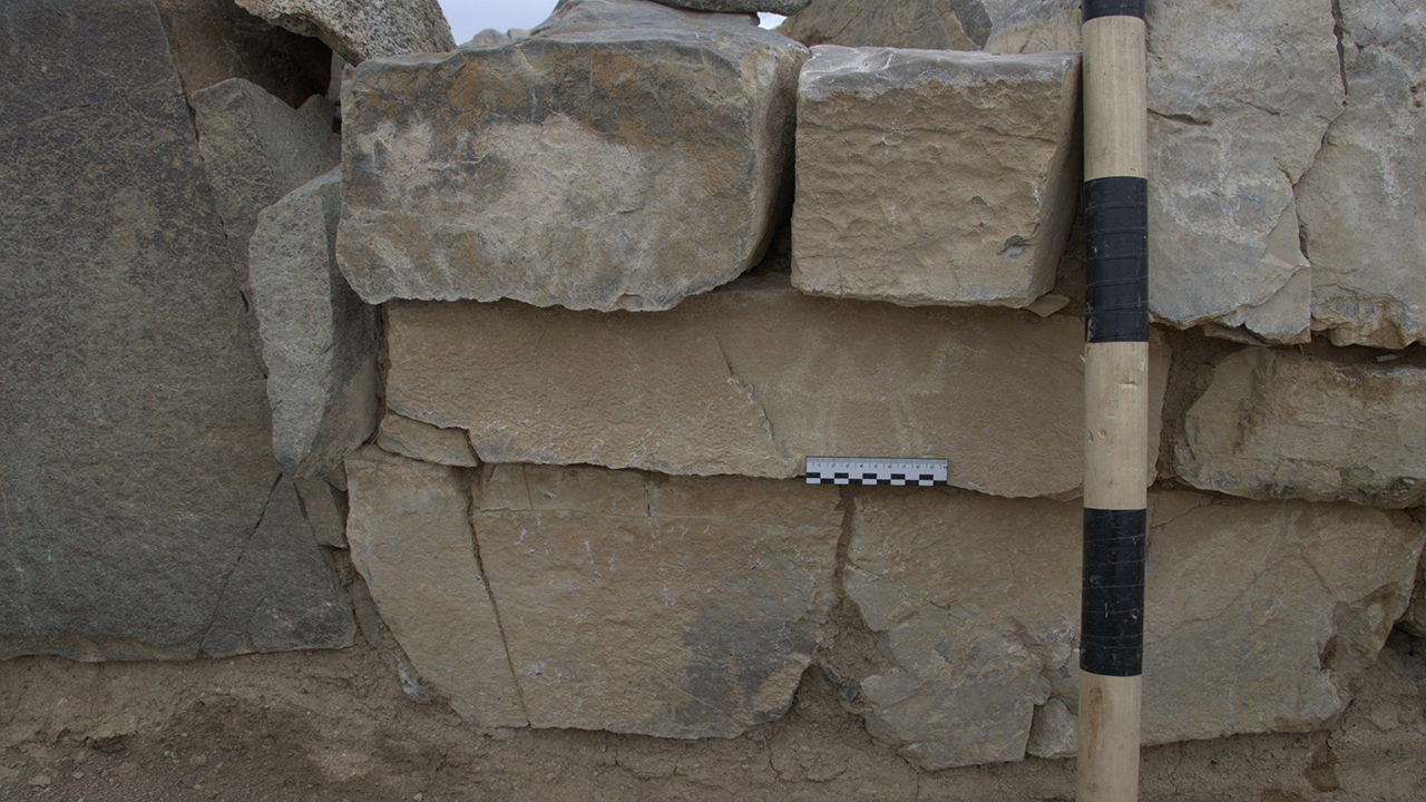 Yapının dış duvarları, her bir bölümü büyük megalitik taşlarla oluşturulmuş olup altıgen biçimde.