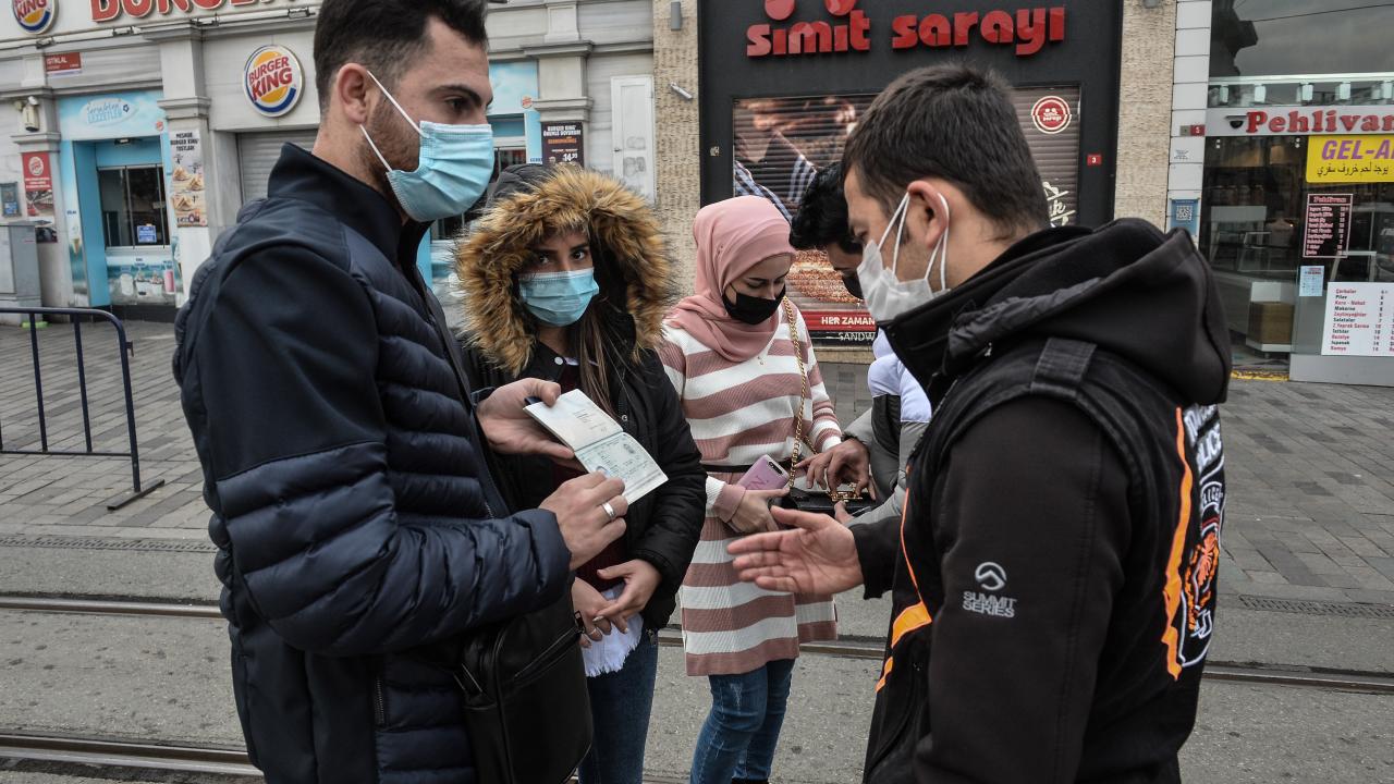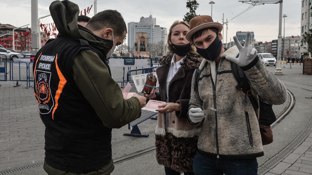 Kısıtlamadan muaf olan yabancı turistler İstanbul sokaklarında pasaport kontrolüyle gezilerini sürdürdü.