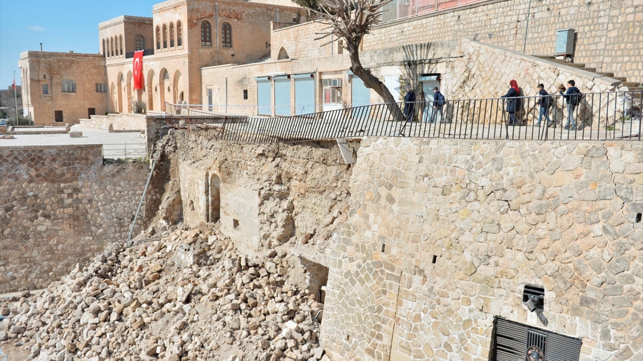 Binlerce yıldır farklı medeniyetlere beşiklik eden Mardin'de çöken istinat duvarının altında, tarihi mescidin kalıntısı bulundu.