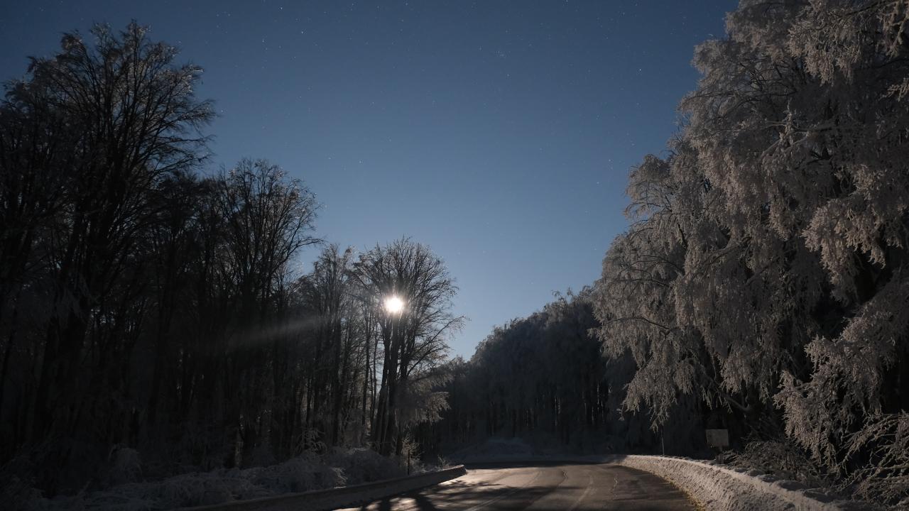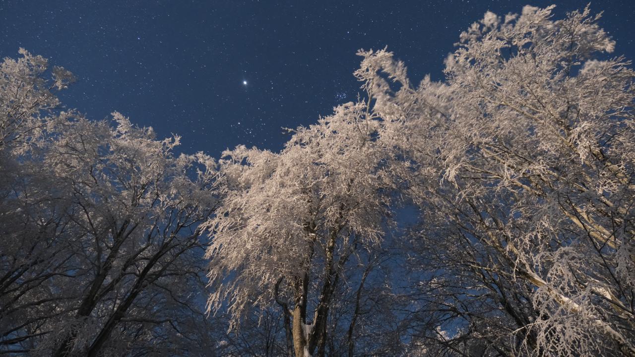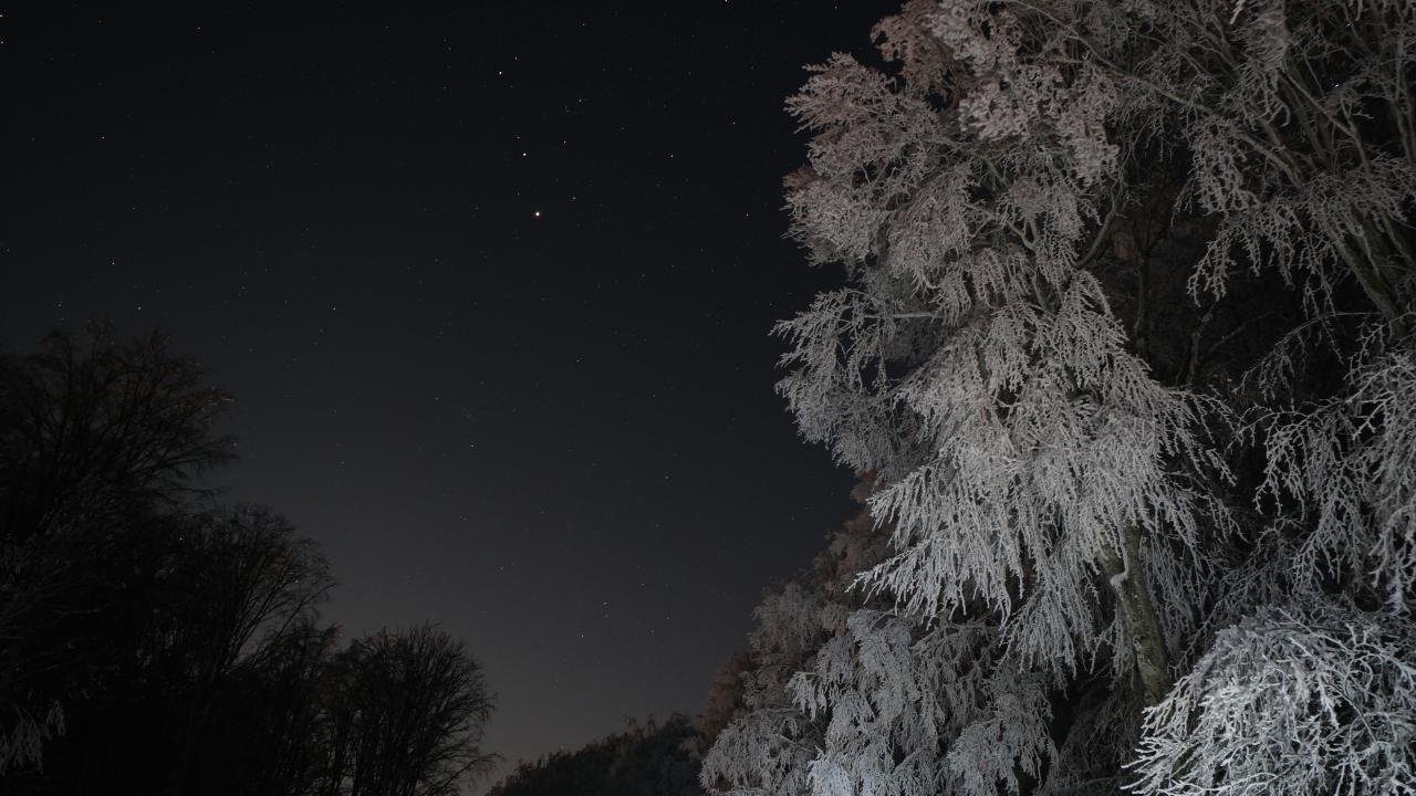 Kırklareli'nin Istranca ormanlarında etkili olan kar yağışının ardından gökyüzünde beliren yıldızlar, uzun pozlama tekniğiyle fotoğraflandı.