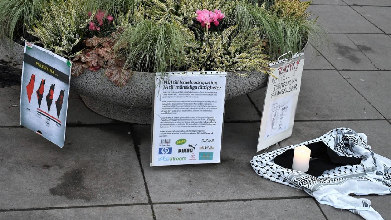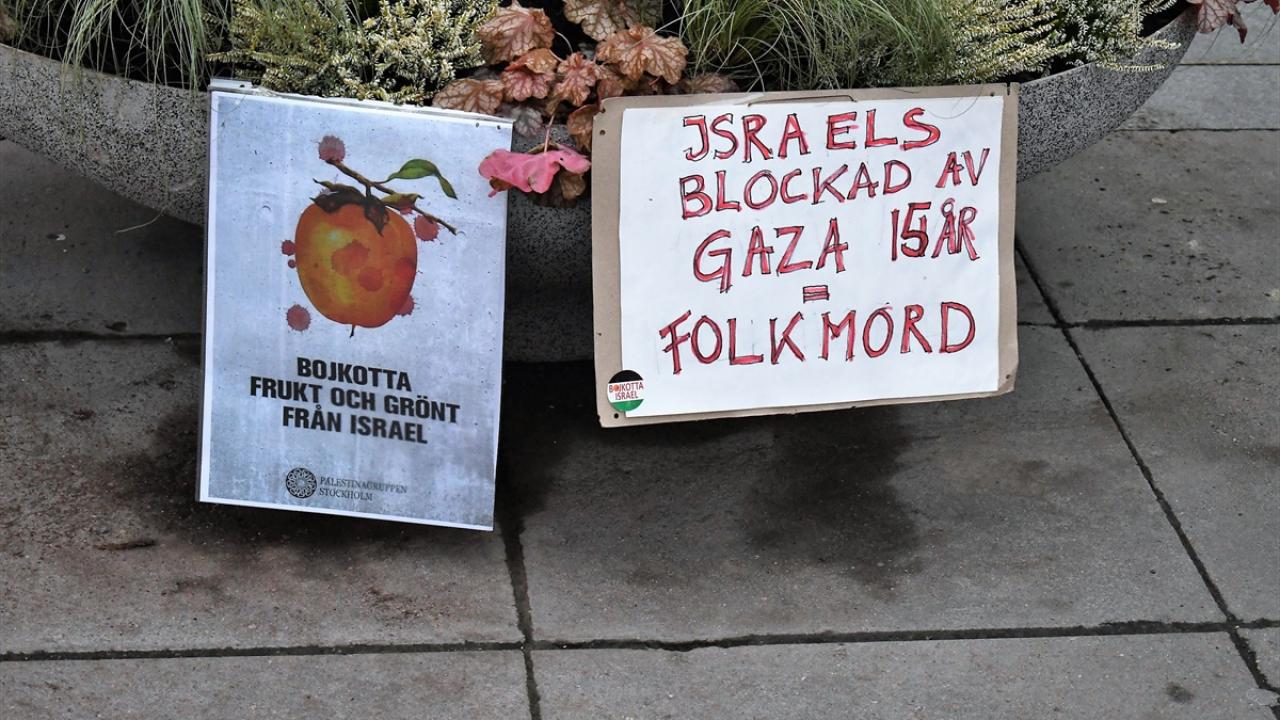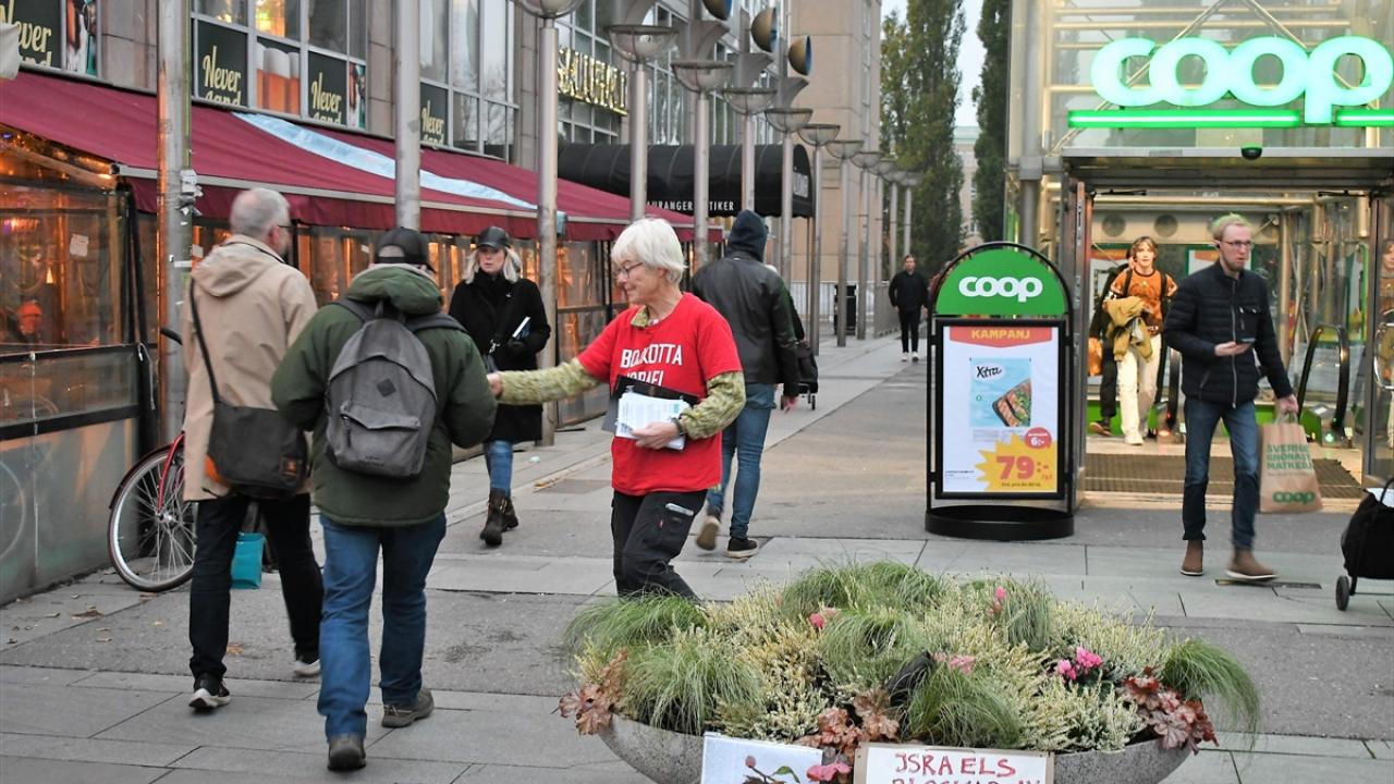 Aktivistler, İsveç`te satılan İsrail markalarının bulunduğu broşürleri de meydandan geçenlere dağıttı.