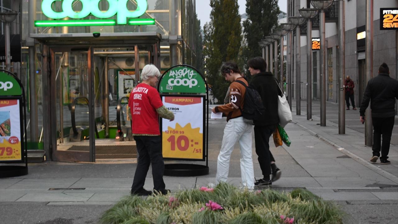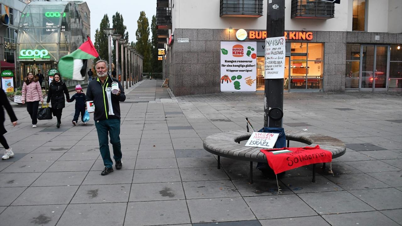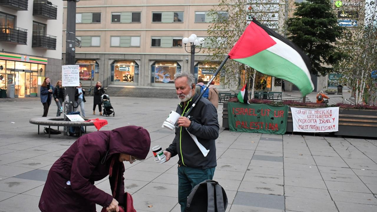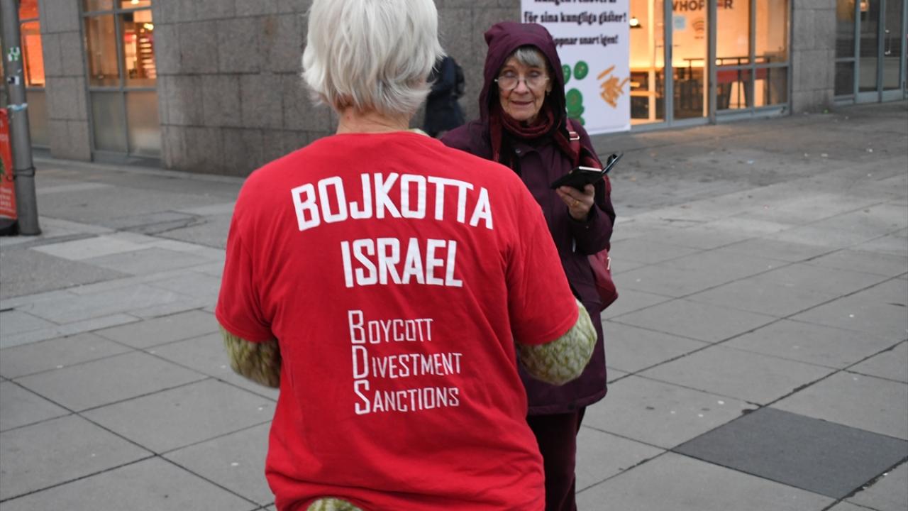 Aktivistler, İsveç`te satılan İsrail markalarının bulunduğu broşürleri de meydandan geçenlere dağıttı.