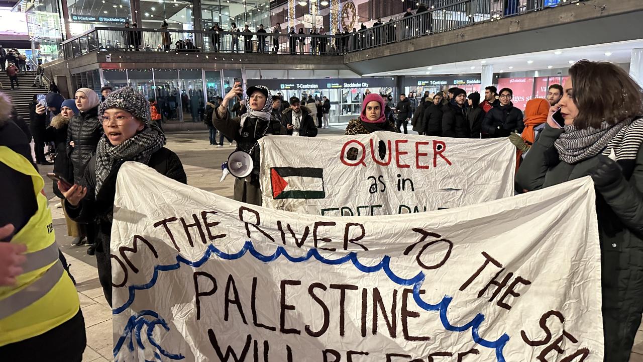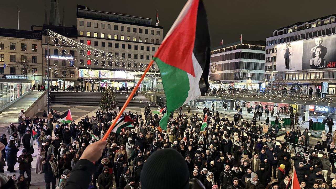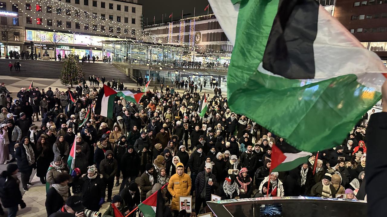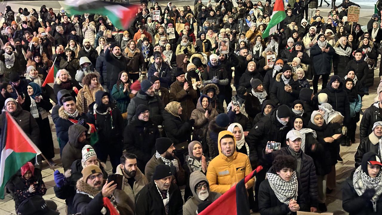 İsveç`in başkenti Stockholm`de Gazze halkıyla dayanışma için yılbaşı kutlamasını iptal eden yüzlerce kişi, Filistin`e destek gösterisi gerçekleştirdi.
