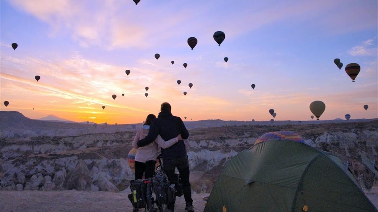 Kapadokya, Ihlara Vadisi ve Göreme’nin tarihi ve doğal güzelliklerini ziyaret eden çift, güzergah boyunca bazen kurdukları çadırlarda bazen de misafirperver Türk halkının daveti üzerine evlerde konaklıyor.