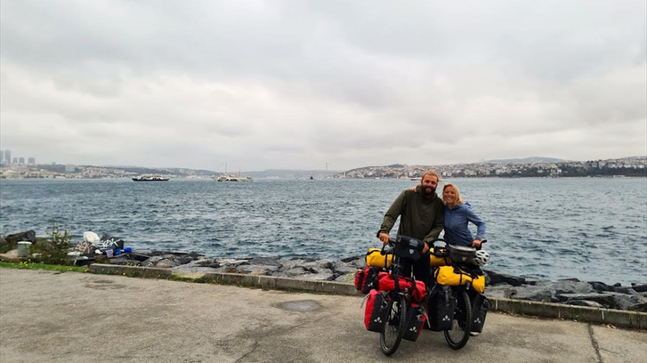 İsviçreli okul öncesi öğretmeni Claudine Wormstetter ile yazılım mühendisi eşi Jason Dimitratos, yakınlarından duyup merak ettikleri Türkiye ve İran'ı görmek için yaklaşık 5 aydır bisikletleriyle seyahat ediyor.
