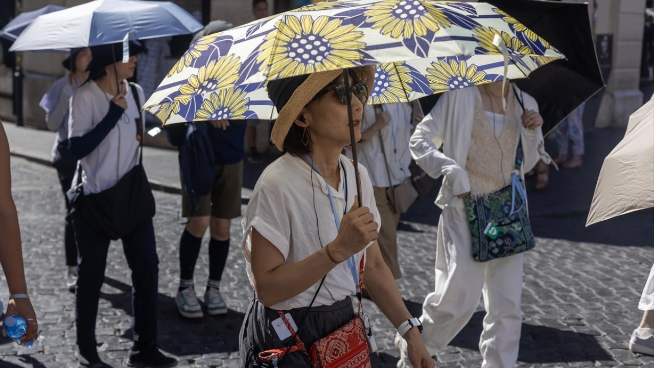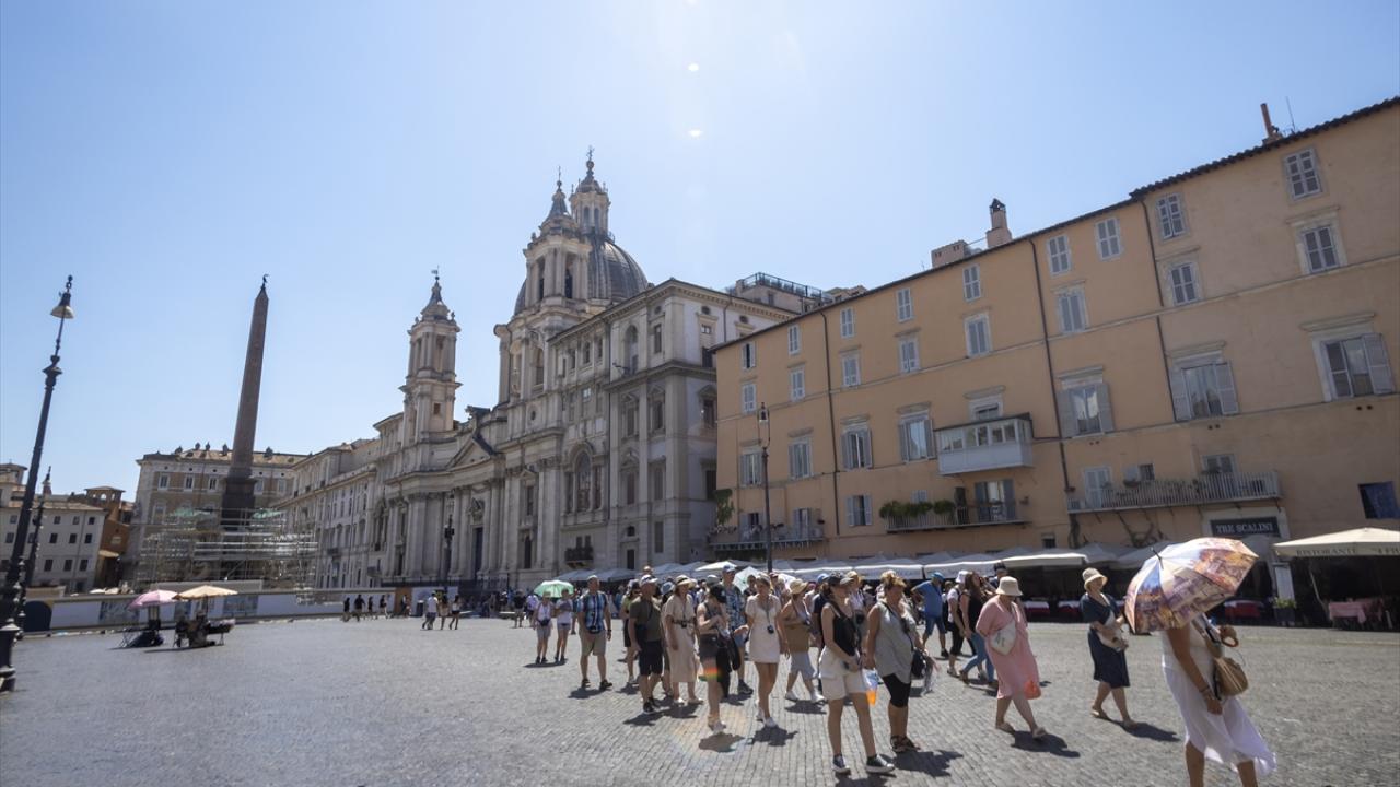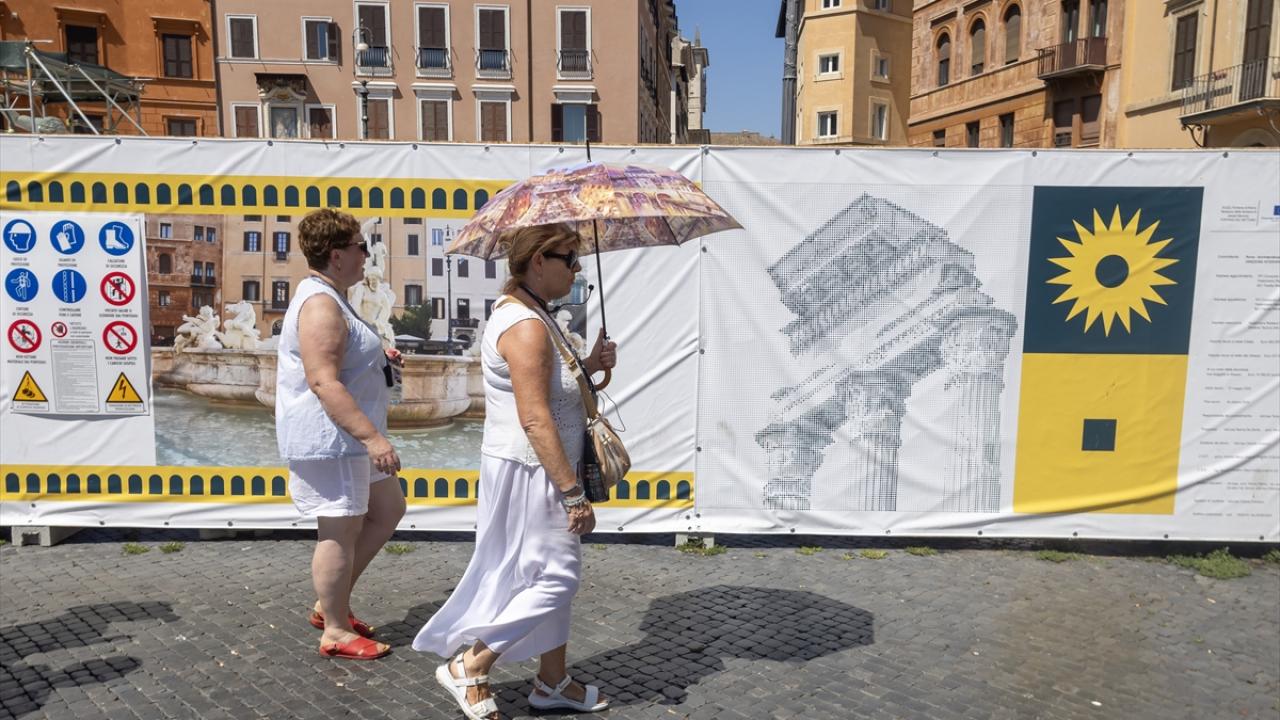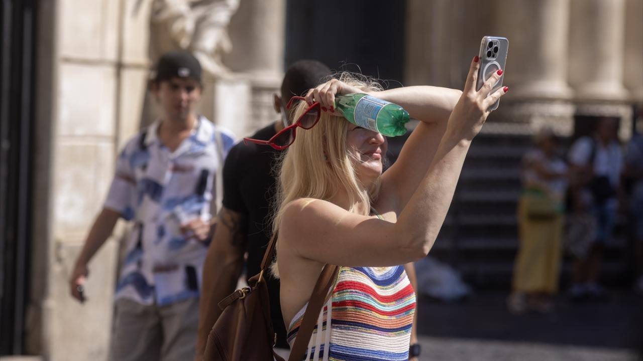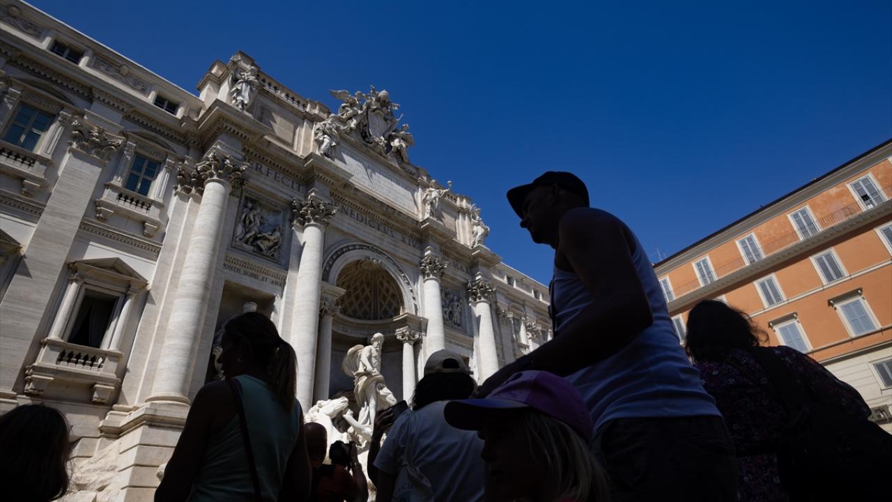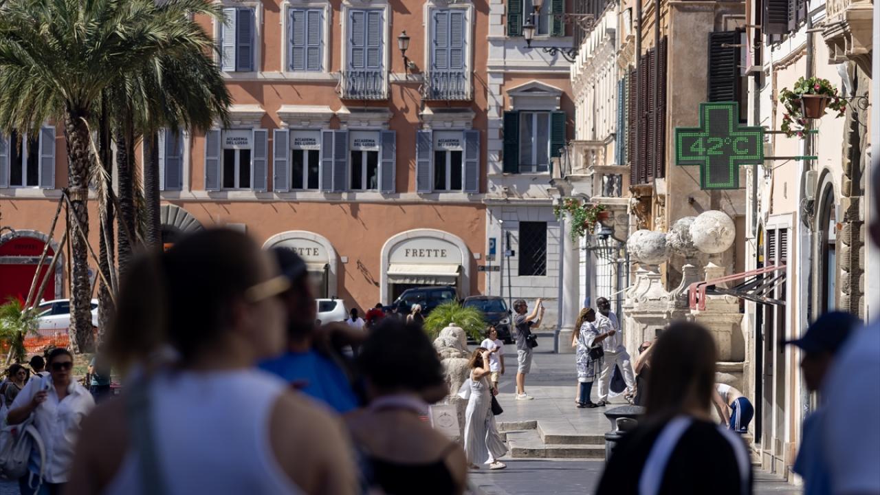 Tarihi başkentin ziyaretçileri, turistik noktalardan İspanyol Merdivenleri önündeki Barcaccia Çeşmesi başta olmak üzere şehirdeki çeşmelerden akan suda serinlemeye çalıştı.