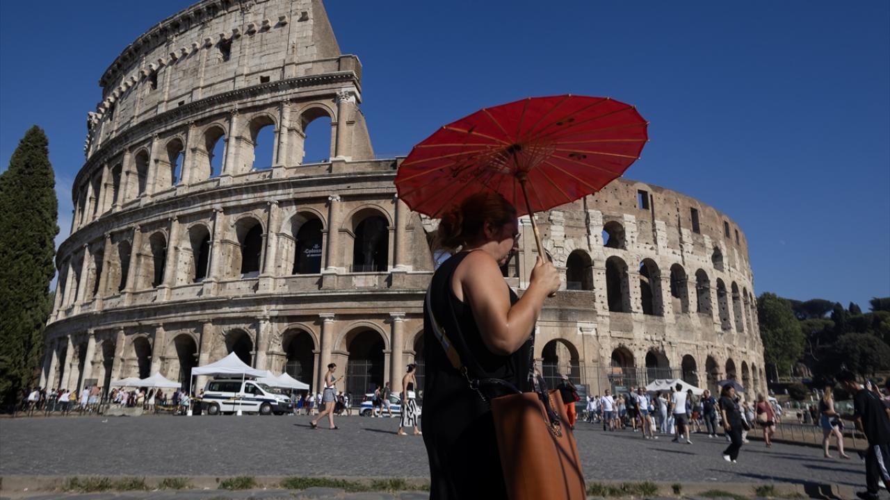 Başkentin simge yapılarından tarihi Kolezyum`u görmeye gelen ziyaretçilerin serinlemesi için sıraların bulunduğu yerlere büyük vantilatörler ve güneşten korunabilmeleri için portatif çadırlar yerleştirildi.