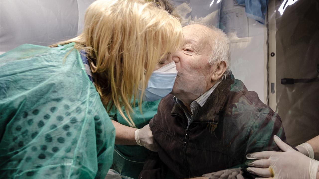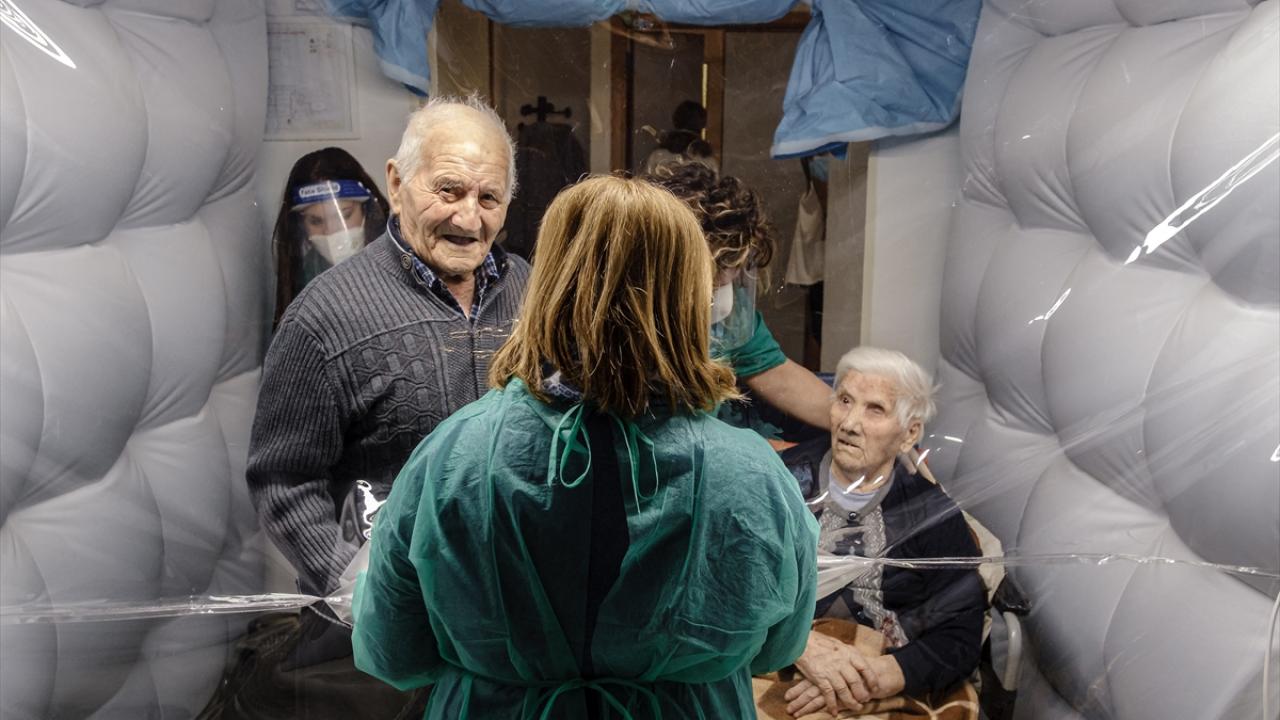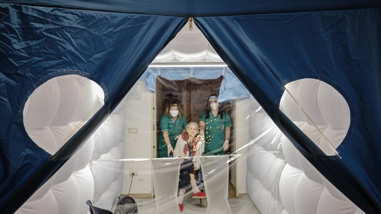 İtalya'da bir bakımevi, yeni tip koronavirüs (Covid-19) salgını nedeniyle aylardır yakınlarına dokunamayan sakinleri için "sarılma odası" kurdu.