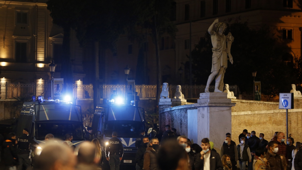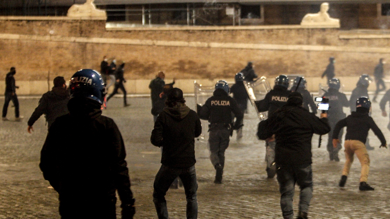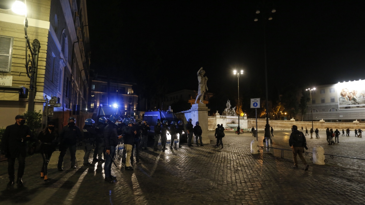 İtalya'nın başkenti Roma'da, yeni tip koronavirüs (COVID-19) salgınına karşı alınan tedbirlere tepki göstermek amacıyla düzenlenen protesto gösterisinde çıkan olaylarda 2 güvenlik görevlisi yaralandı, 10 kişi gözaltına alındı.