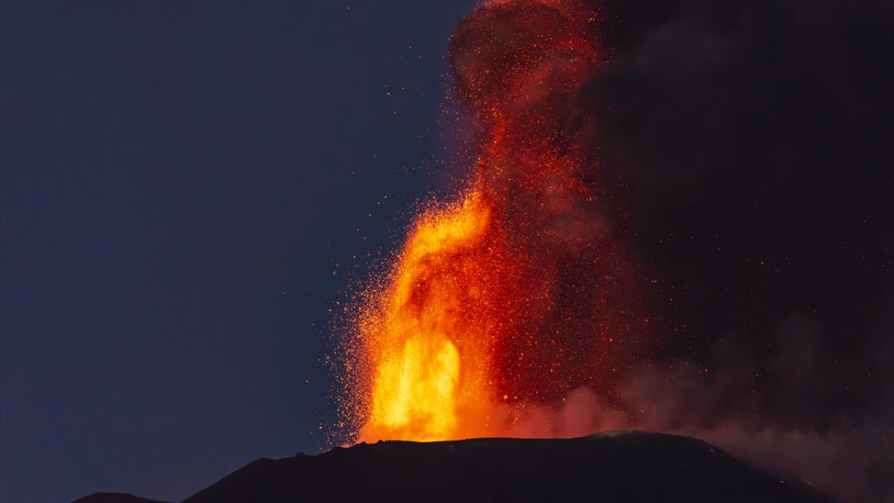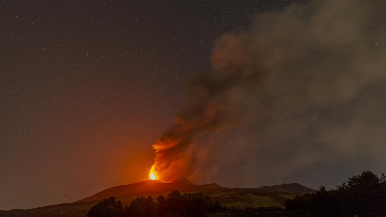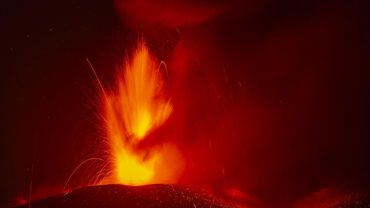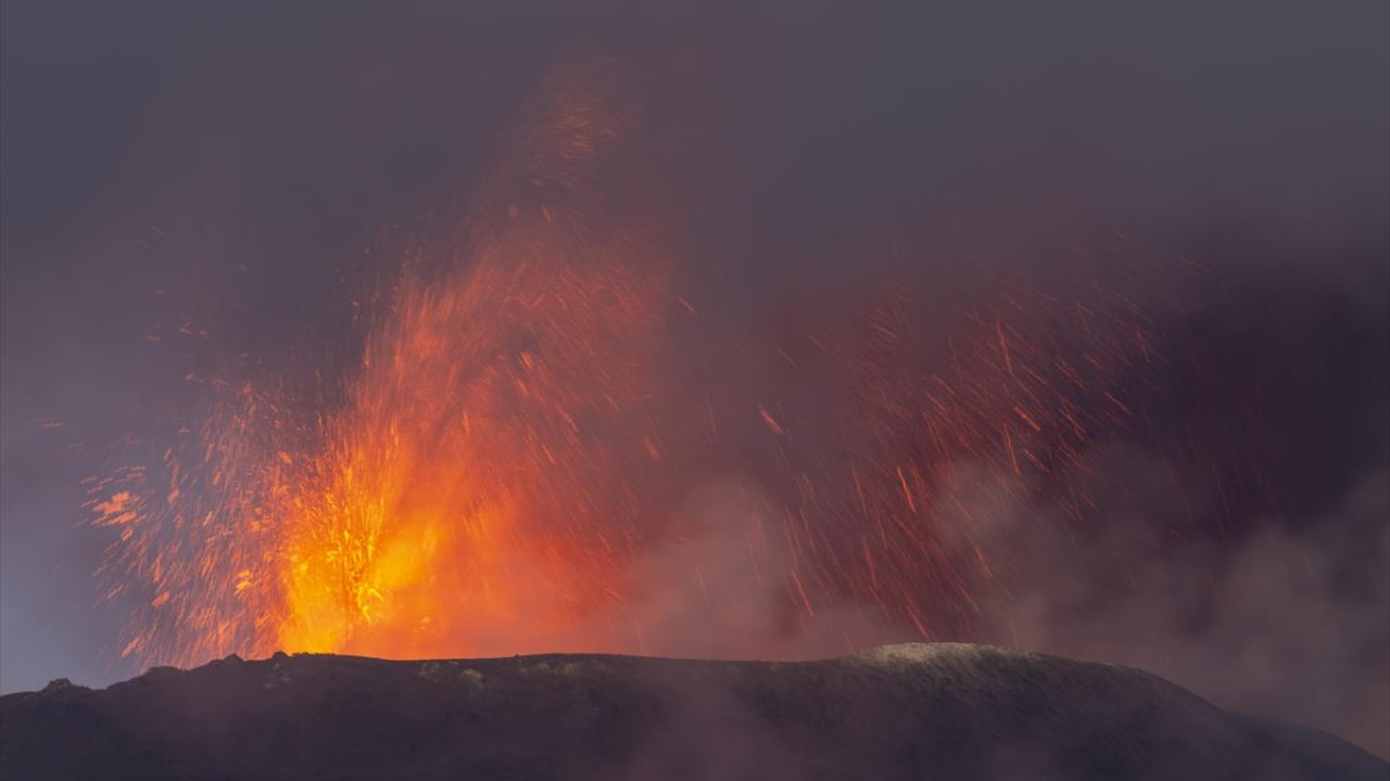 Sicilya`da bulunan 3 bin 326 metre yüksekliğindeki yanardağ, patlamayla birlikte kül ve lav püskürttü.