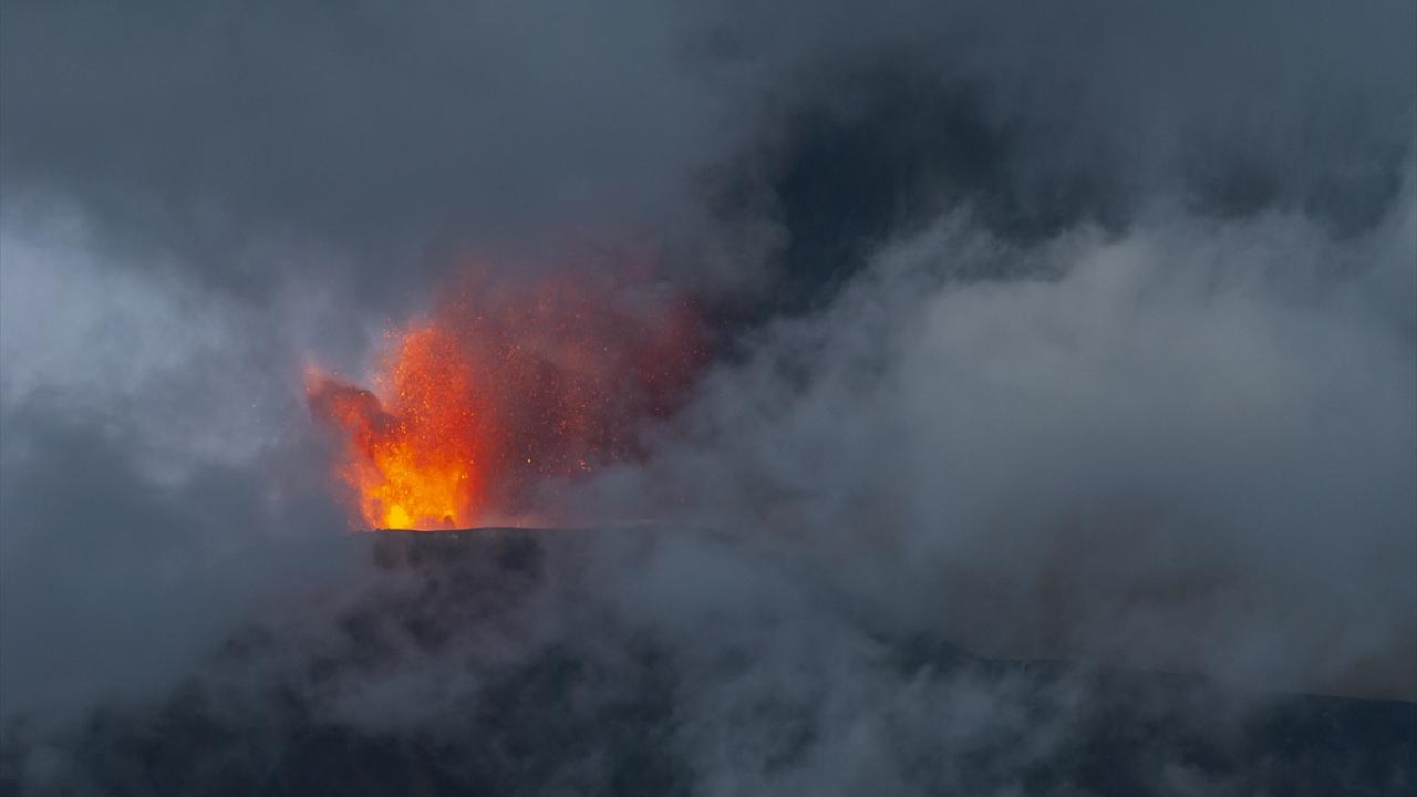 Bu kraterden güçlü şekilde lav ve kül püskürmeye başladı.