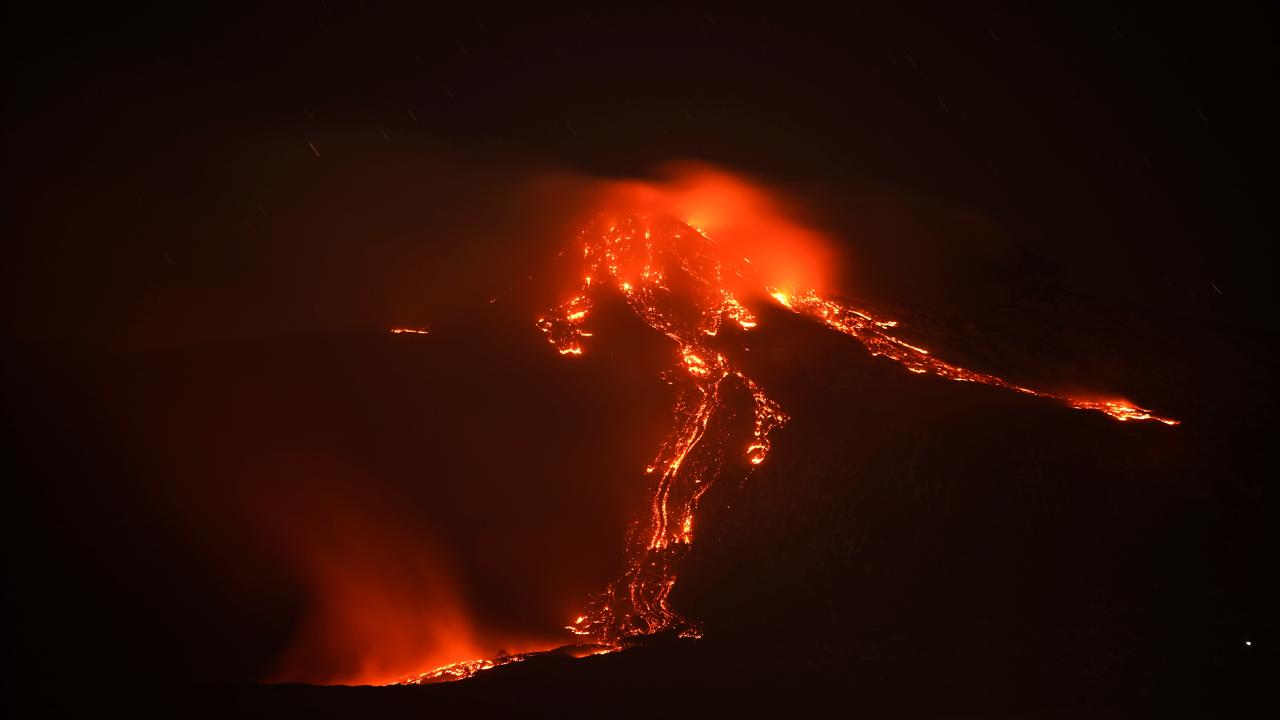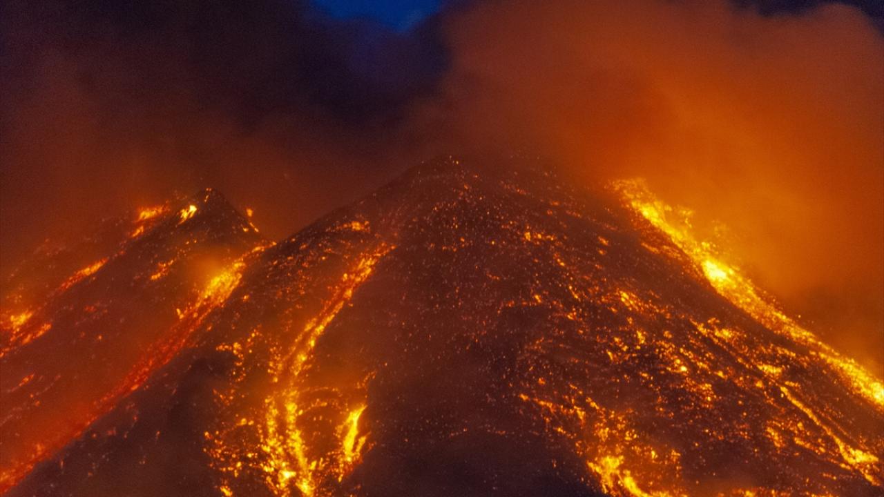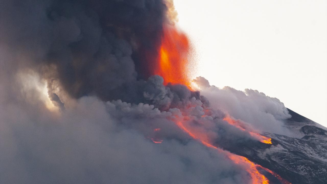 Dünyanın en aktif yanardağlarından Etna`daki patlama yanardağın güneydoğu kraterinde oluştu.