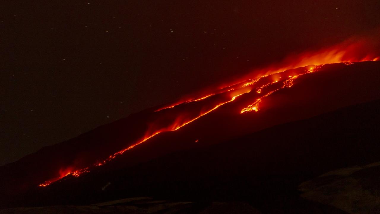 Bocca Nuova krateri ile Güneydoğu krateri arasındaki yamaçlarda birkaç lav akıntısı oluşurken, en uzun akıntının yaklaşık 2 kilometreye ulaştığı bildirildi.