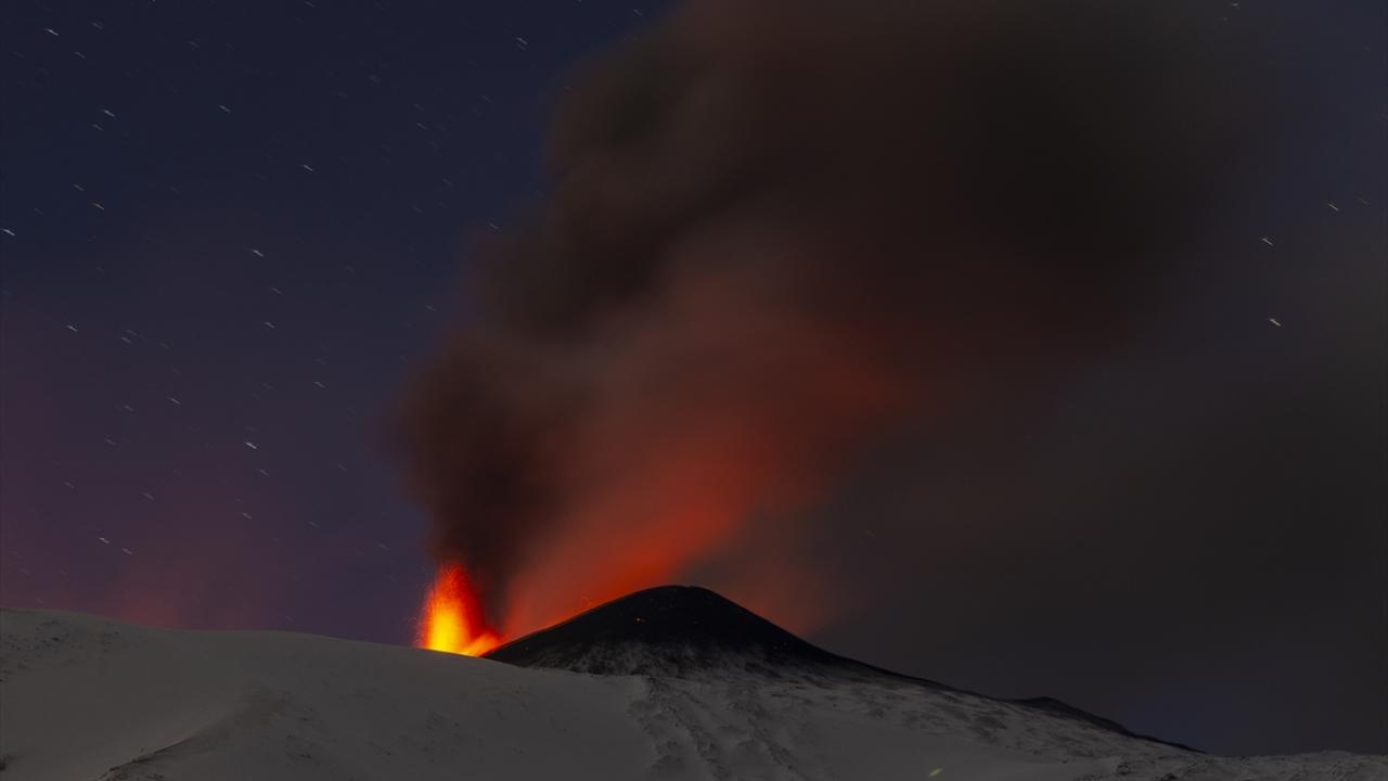 İtalya’nın Katanya kentinde Etna Yanardağı’nın patlamasıyla birlikte yoğun duman yükselirken, 400 metreye ulaşan lav fıskiyeleri ve kalın bir kül sütunu oluştu. Voragine Krateri’nin doğu yamacında yeni bacalar açılırken, volkanik faaliyet devam ediyor. Olası değişimler ve kül emisyonları nedeniyle Katanya Uluslararası Havalimanı kırmızı alarm durumunu sürdürüyor.