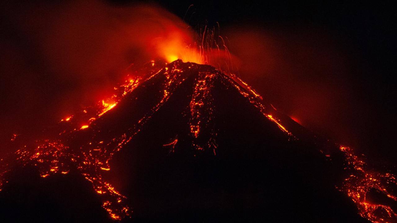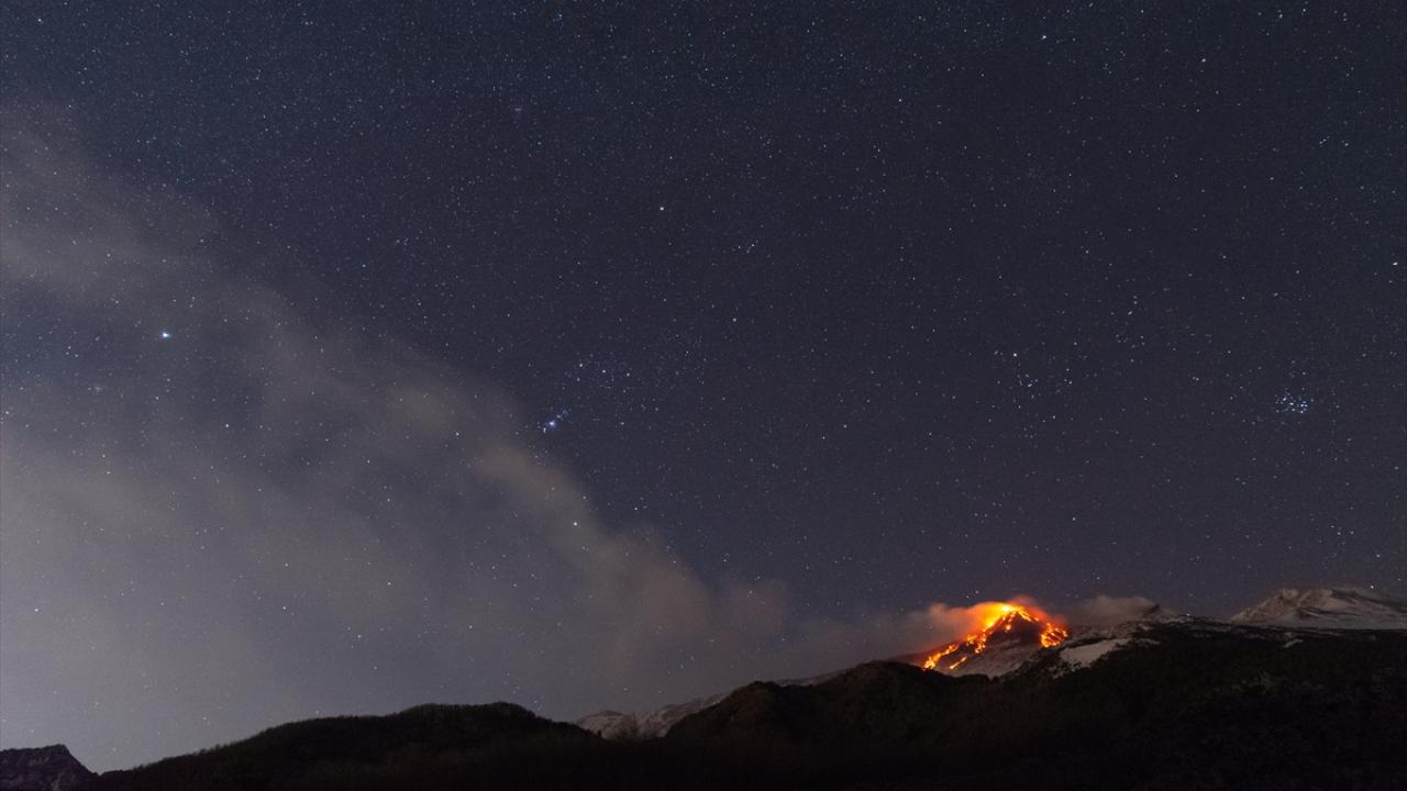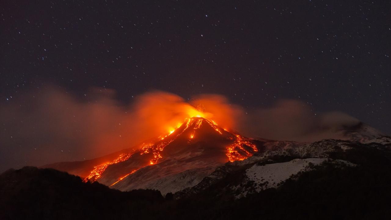 İtalya'nın Sicilya Adası'nda bulunan Etna Yanardağı bir kez daha faaliyete geçti. Etna gece yarısı lav püskürtmeye başladı. Yanardağdan püsküren lavlar geceyi aydınlattı.