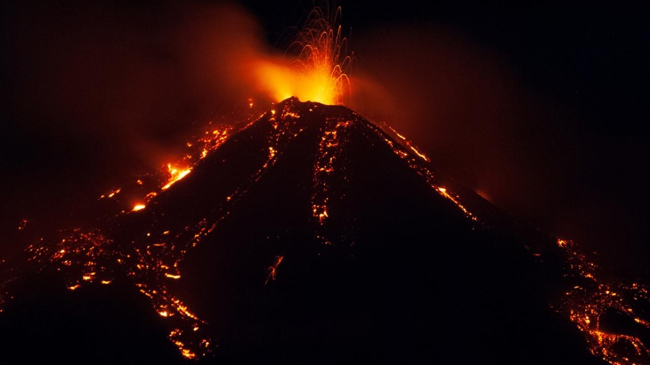 Şiddetli patlamaları, lav akıntıları takip etti. Lavların kızıllığı gökyüzünün karanlığını adeta deldi.