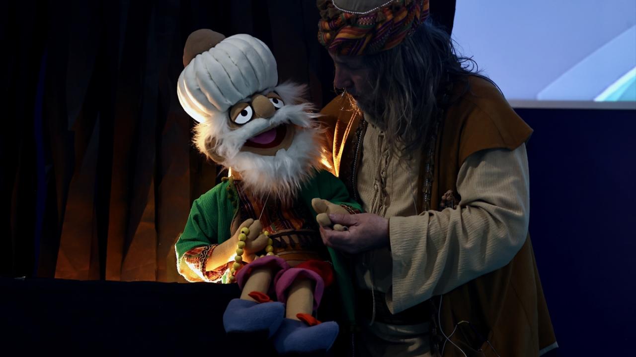 Tiyatro sanatçısı ve vantrilok Mehmet Tahir İkiler, Nasrettin Hoca kuklasıyla AA muhabirine yaptığı açıklamada, Karagöz, meddah gibi geleneksel Türk tiyatrosu oyunlarını çocuklarla buluşturduklarını ifade etti.