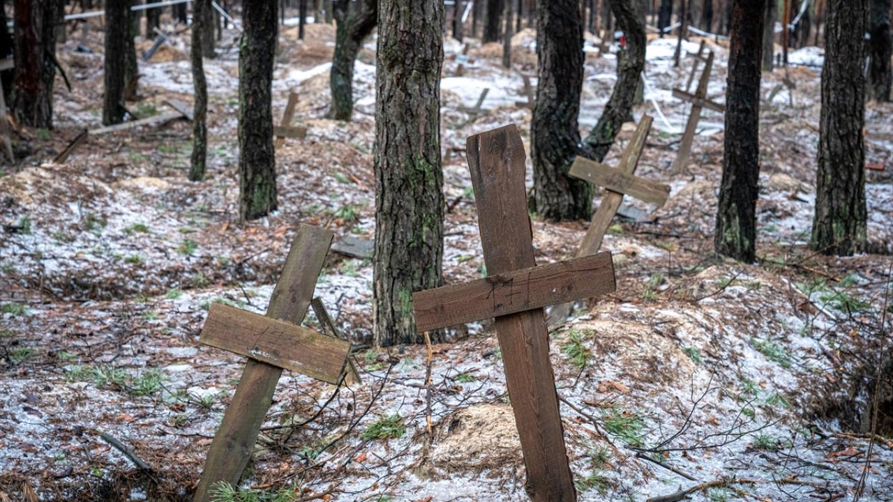 Rusya Ukrayna savaşı üçüncü yılına girerken İzium kent mezarlığının yanındaki alandaki toplu mezarlar görüntülendi.