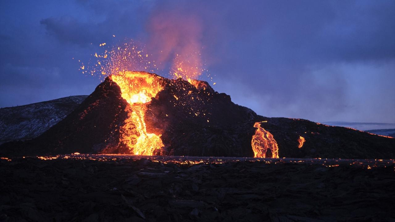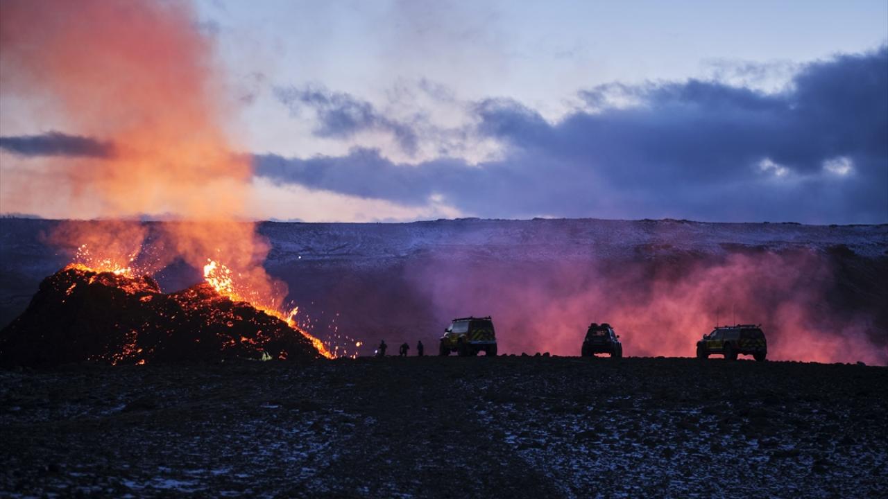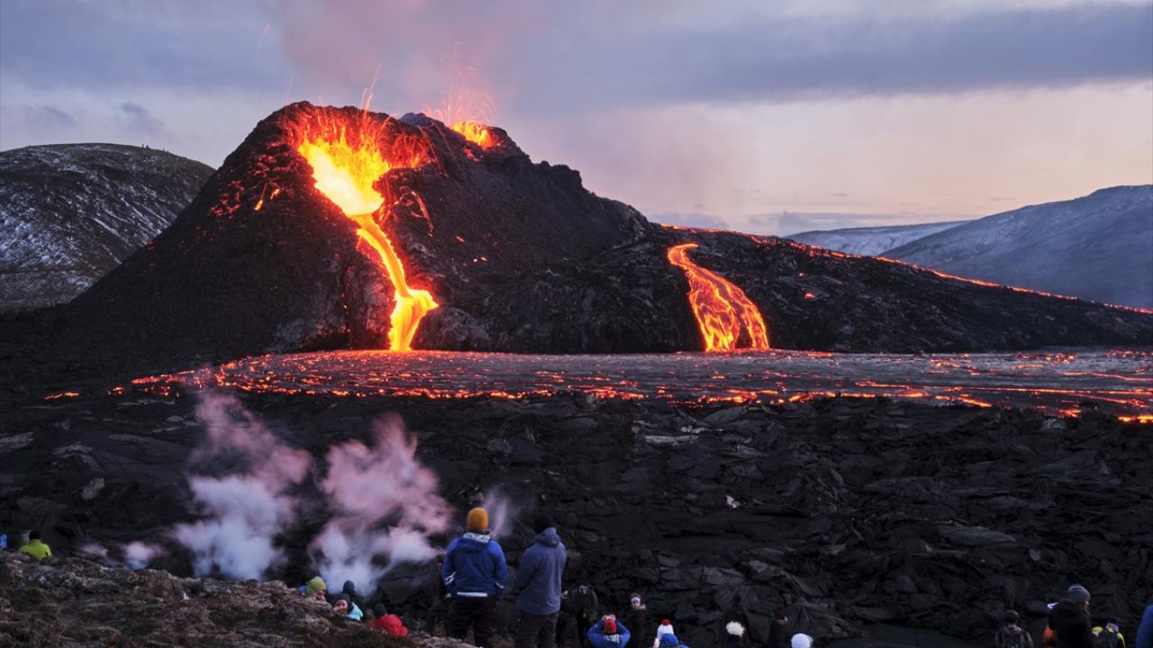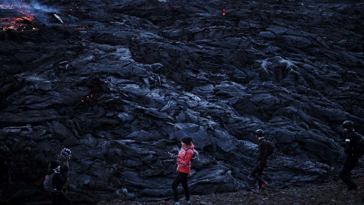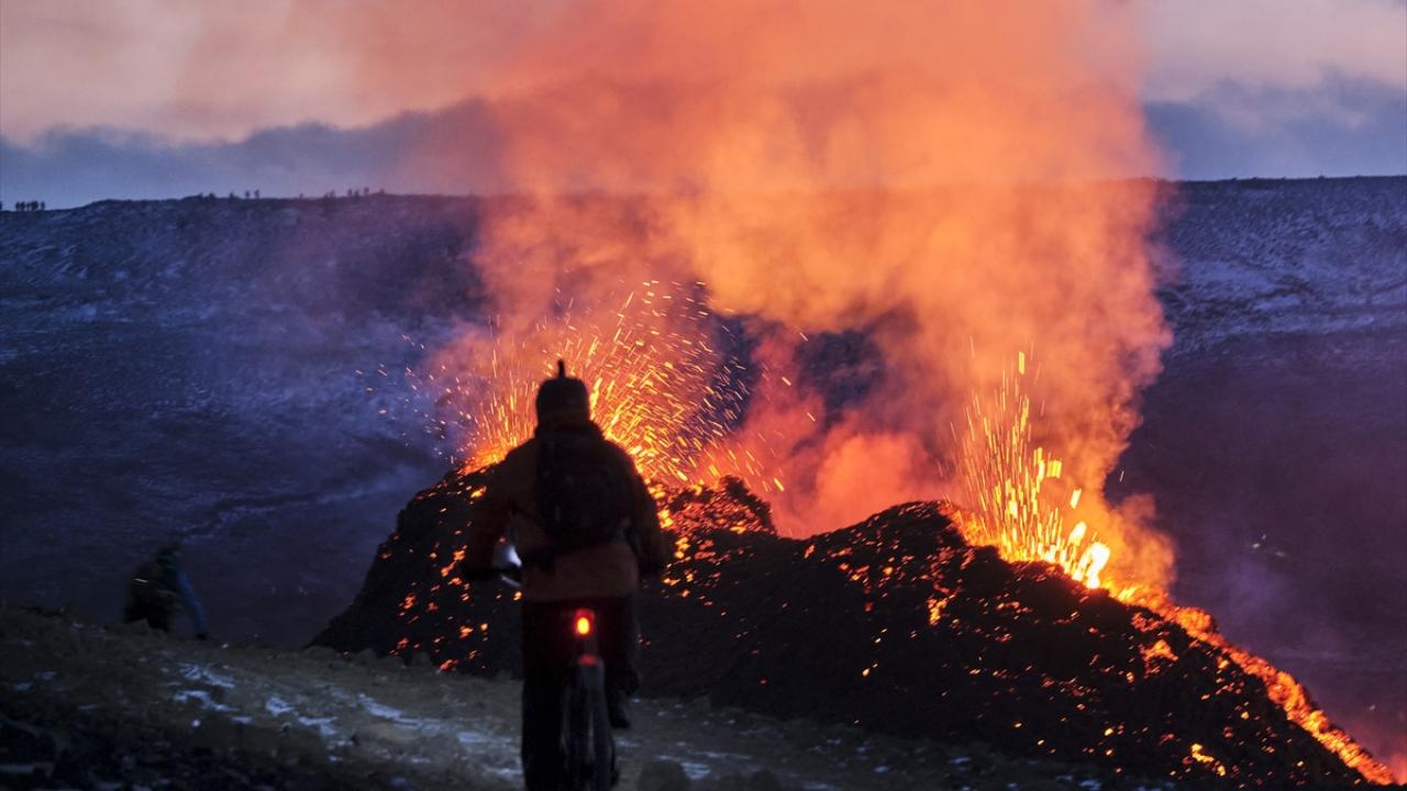 İzlanda'nın güneybatısındaki Reykjanes Yarımadası'nda bulunan Fagradals Yanardağı, 6 bin yıl sonra lav püskürtmeye devam ederken çok sayıda kişi de bölgeye giderek volkanın patlamasını izledi.