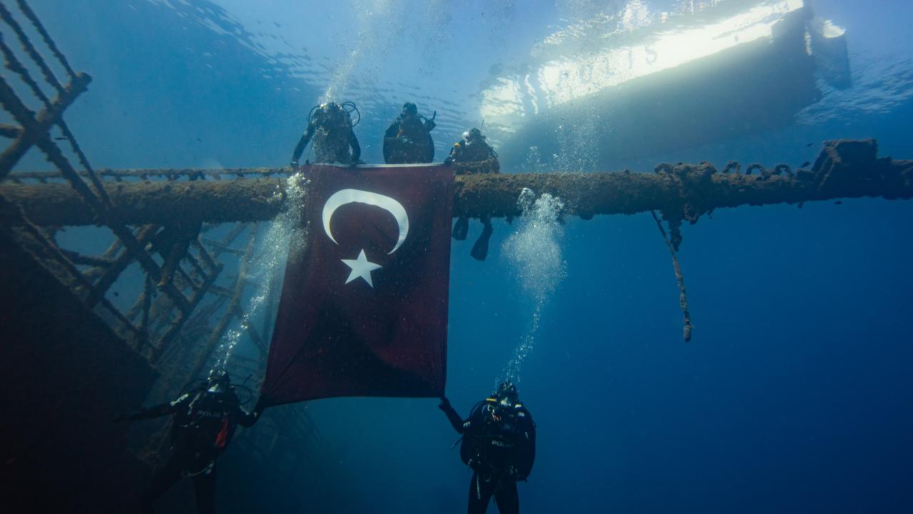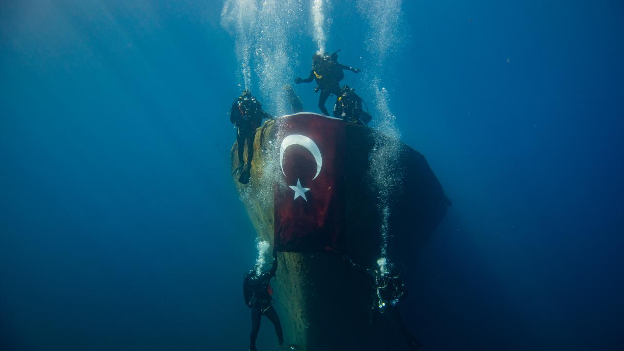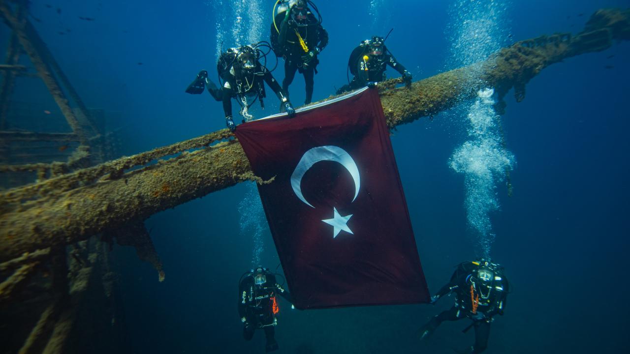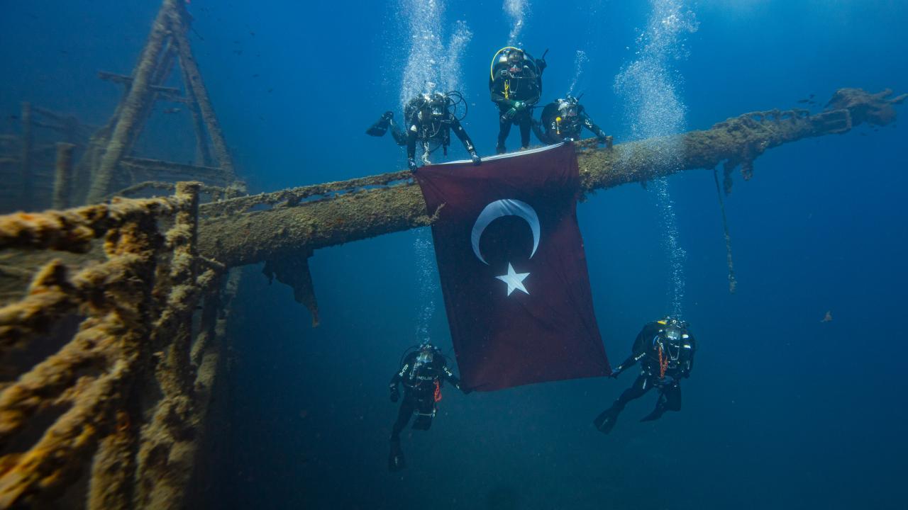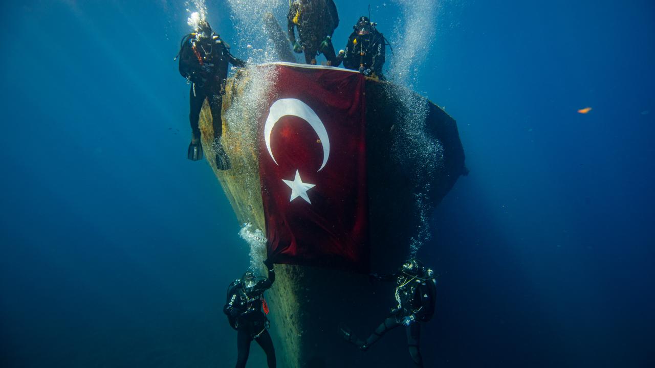 İzmir deniz polisine bağlı kurbağa adamlar, 29 Ekim Cumhuriyet Bayramı dolayısıyla Çeşme açıklarında, 2004 yılında Aliağa’ya söküm için götürülürken batan Monem gemisine dalarak Türk bayrağı açtı.