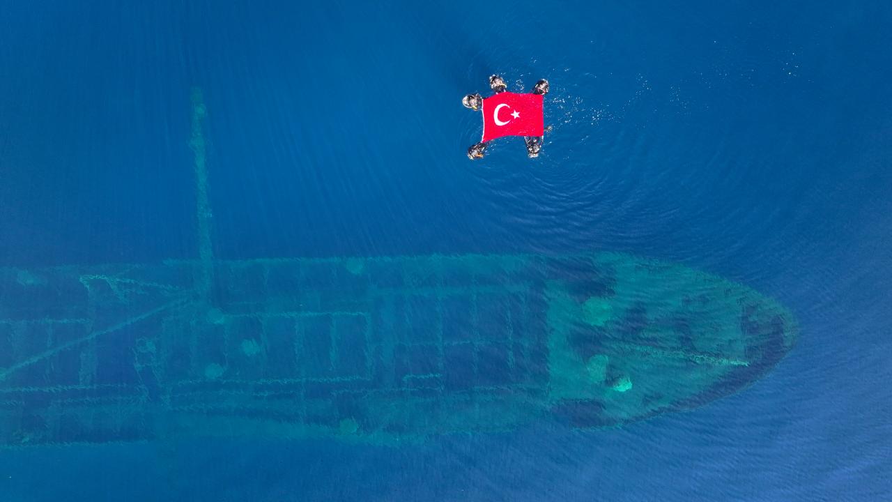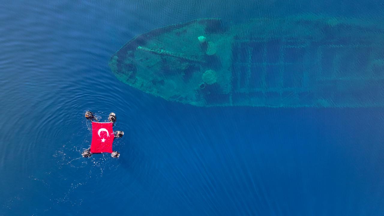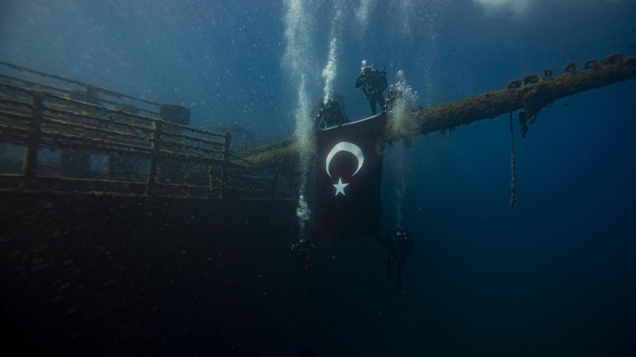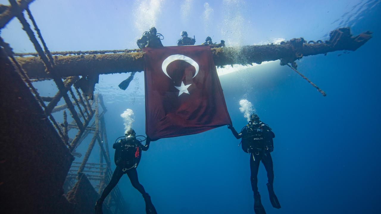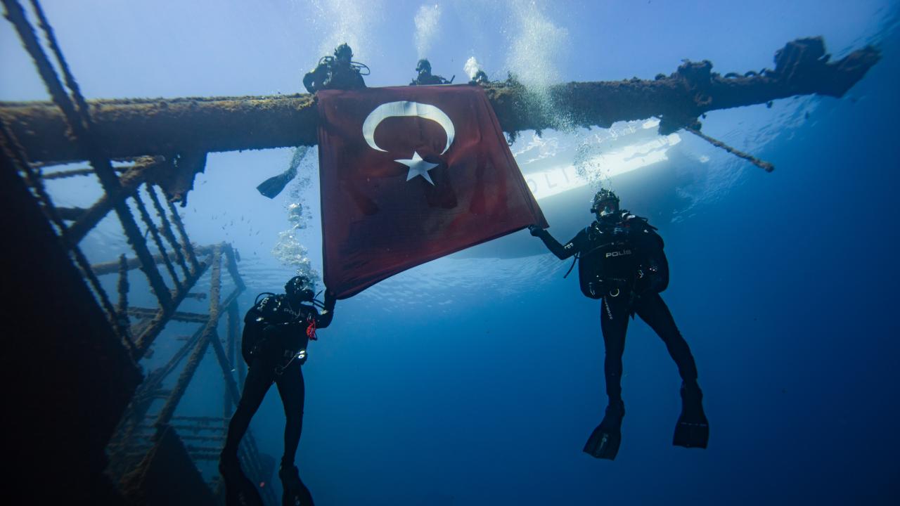 İzmir deniz polisine bağlı kurbağa adamlar, 29 Ekim Cumhuriyet Bayramı dolayısıyla Çeşme açıklarında, 2004 yılında Aliağa’ya söküm için götürülürken batan Monem gemisine dalarak Türk bayrağı açtı.