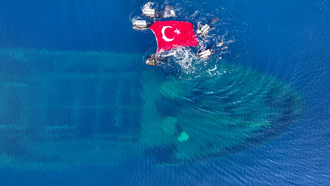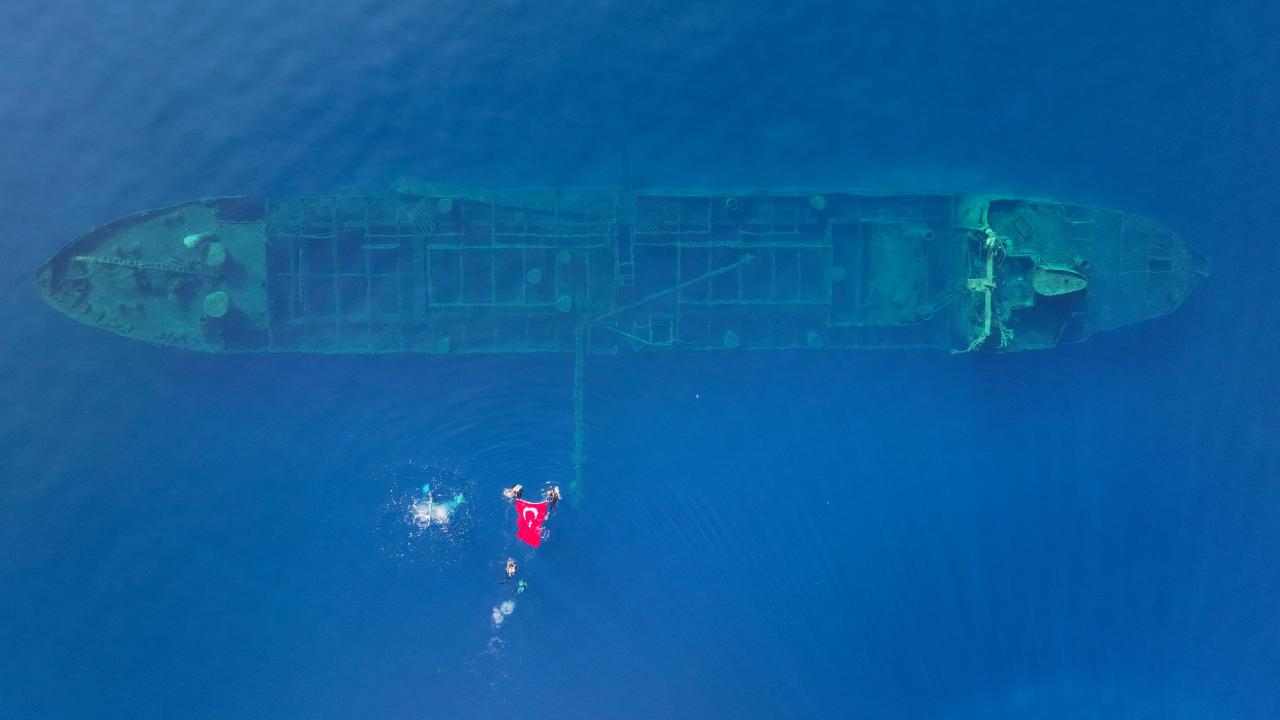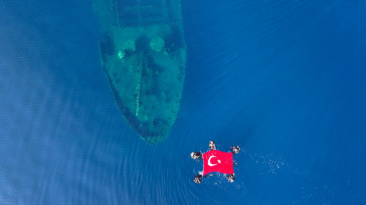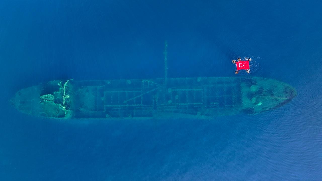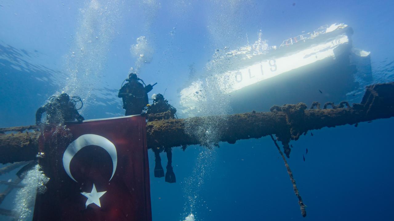 İzmir deniz polisine bağlı kurbağa adamlar, 29 Ekim Cumhuriyet Bayramı dolayısıyla Çeşme açıklarında, 2004 yılında Aliağa’ya söküm için götürülürken batan Monem gemisine dalarak Türk bayrağı açtı.
