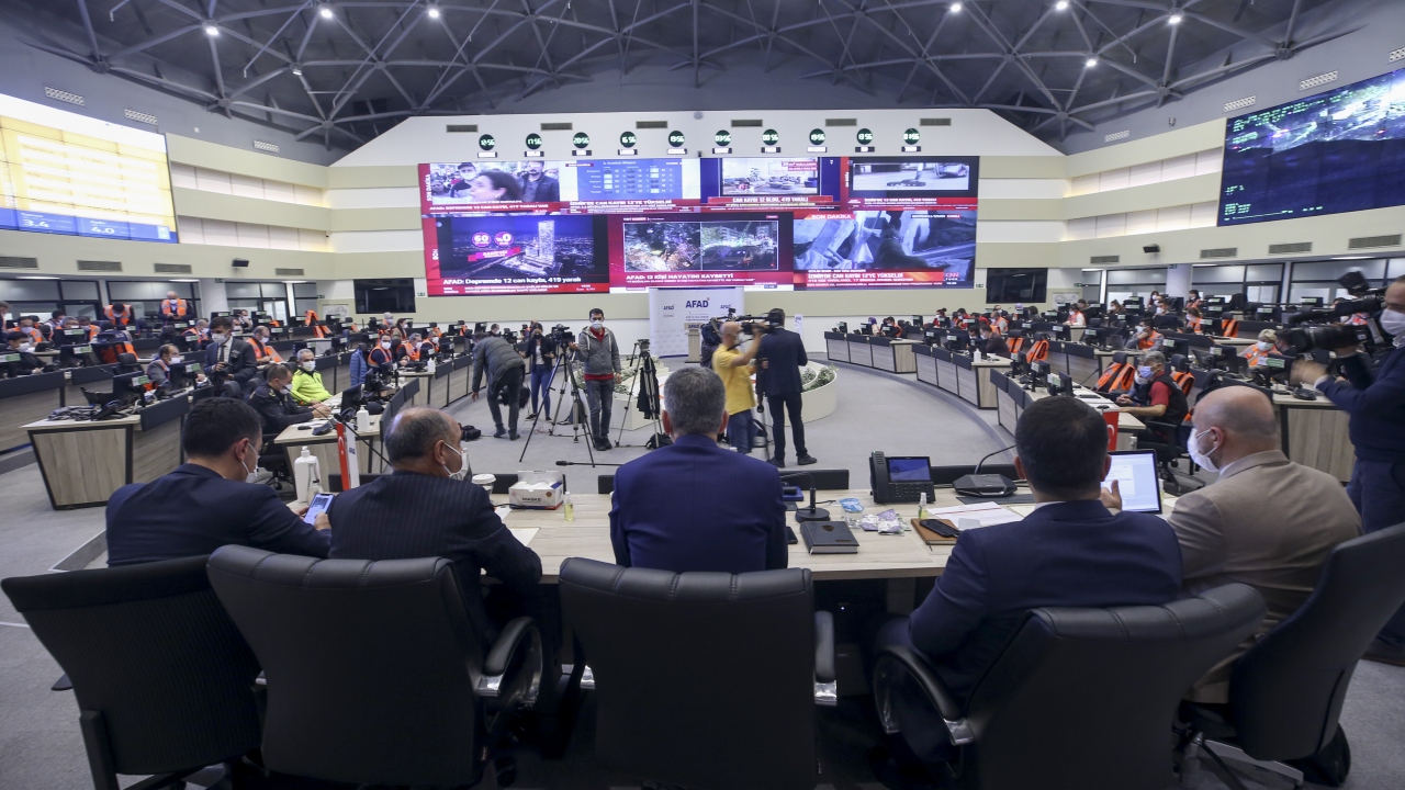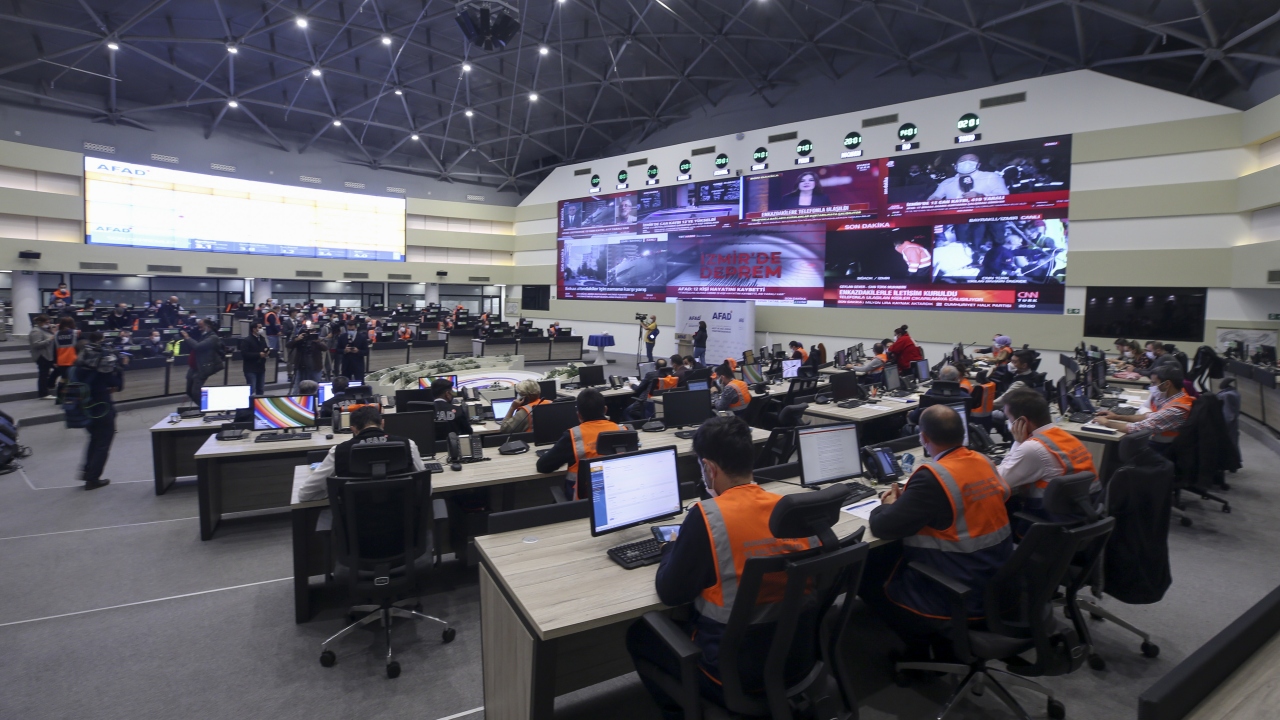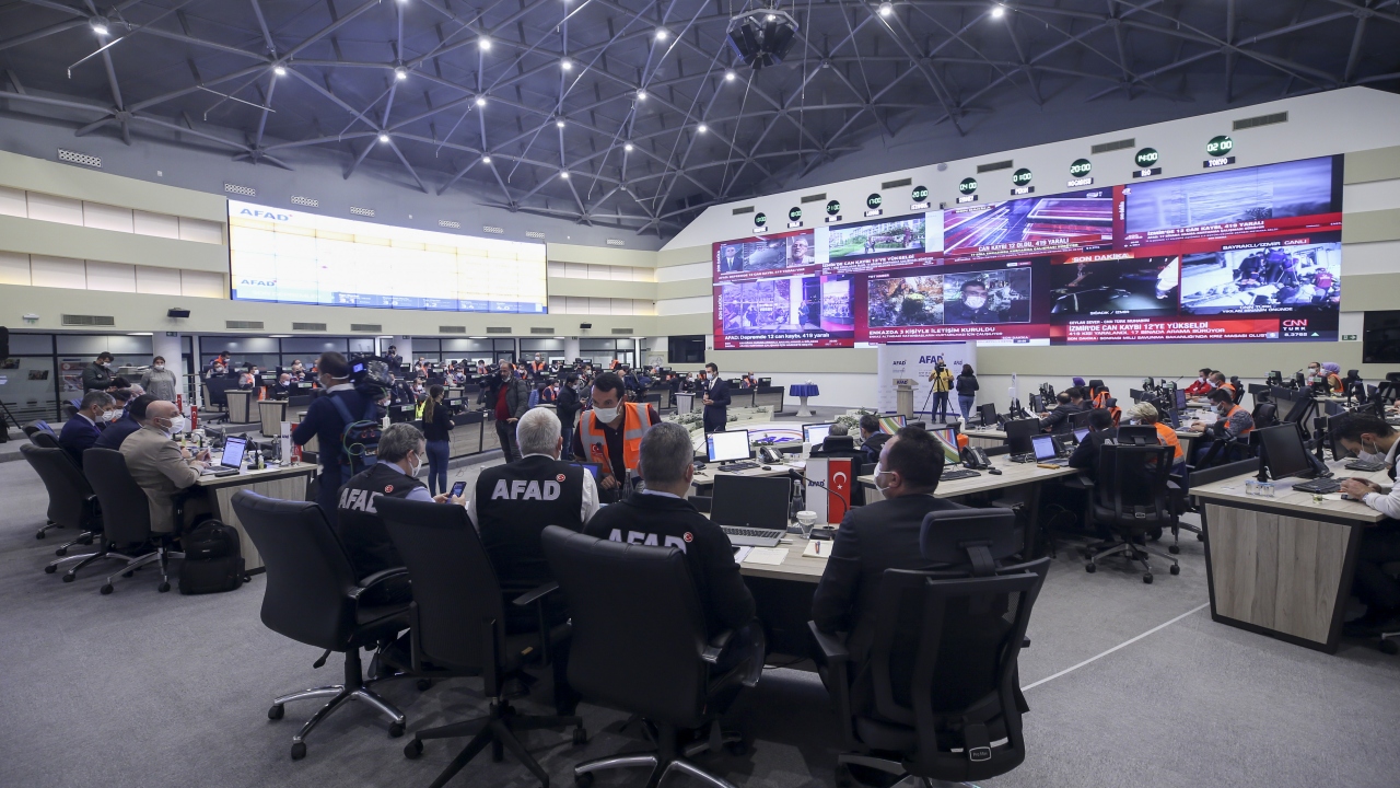 AFAD Başkanlığındaki koordinasyon merkezinde arama kurtarma, enerji, sağlık, güvenlik ve trafik, haberleşme, ulaşım-altyapı, barınma, hasar-tespit, enkaz kaldırma, nakliye, beslenme, kaynak yönetimi, yangın, zarar tespit, altyapı, gıda ve tarım hayvancılık, defin, kimyasal, biyolojik radyasyon ve nükleer tehlikeli maddeler (KBRN), psikososyal destek, ayni bağış ve depo yönetimi, teknik destek ve ikmal, tahliye yerleştirme ve planlama, görevli personel lojistiği, uluslararası destek ve iş birliği, bilgi yönetimi, satın alma ve kiralama, muhasebe bütçe ve mali raporlama, ulusal ve uluslararası nakdi bağış ile bilgi yönetimi izleme ve değerlendirme başlıklarında ekipler görev yapıyor.