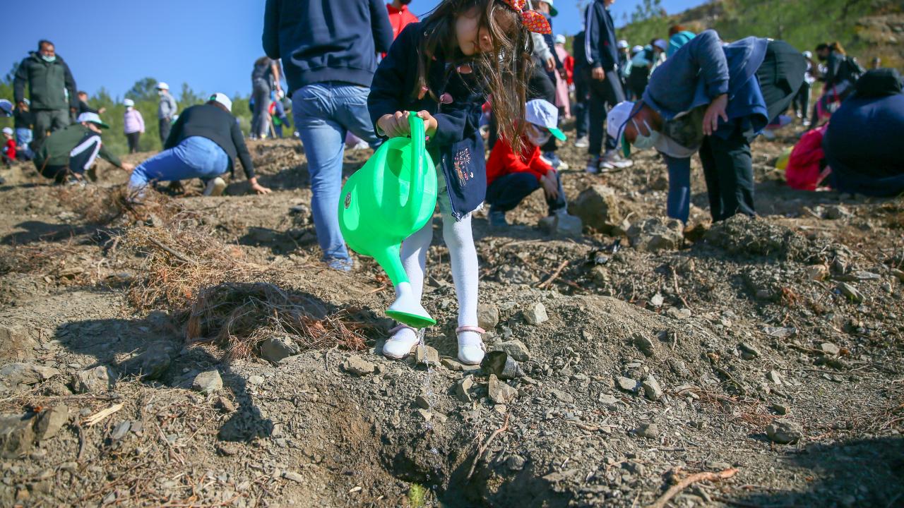 İzmir depreminde ölen ikizler anısına 1500 fidan toprakla buluştu