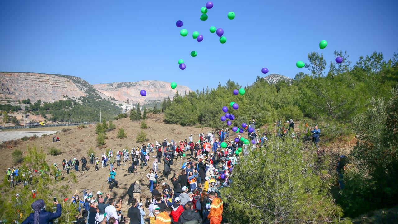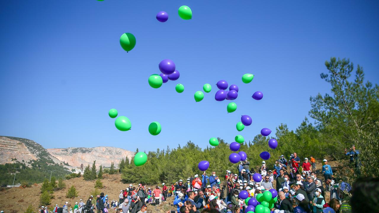 Bornova Kaymakamı Fatih Genel, Orman İşletme Müdürü Ersen Çetin ve diğer yetkililerin de katıldığı etkinlikte, gökyüzüne balonlar bırakıldı.