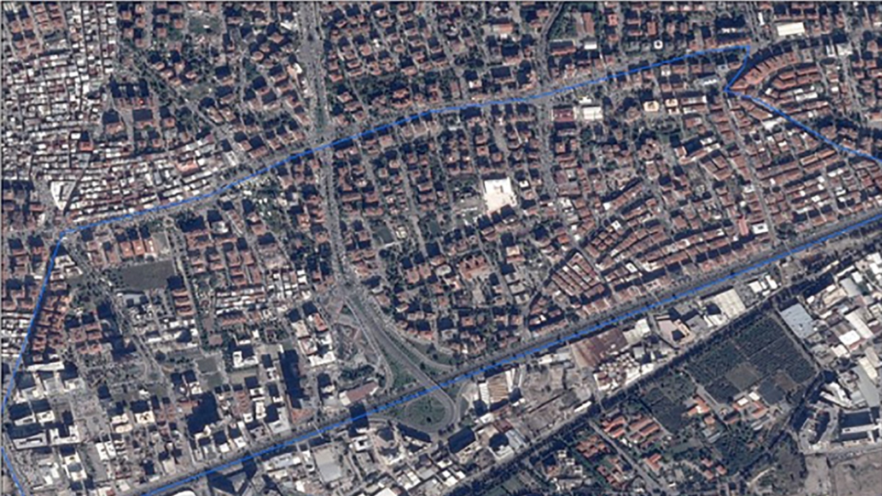 Çalışmada, depremden en çok etkilenen ve 17 binanın yıkıldığı Bayraklı ilçesinin genel görüntüsü alındı.