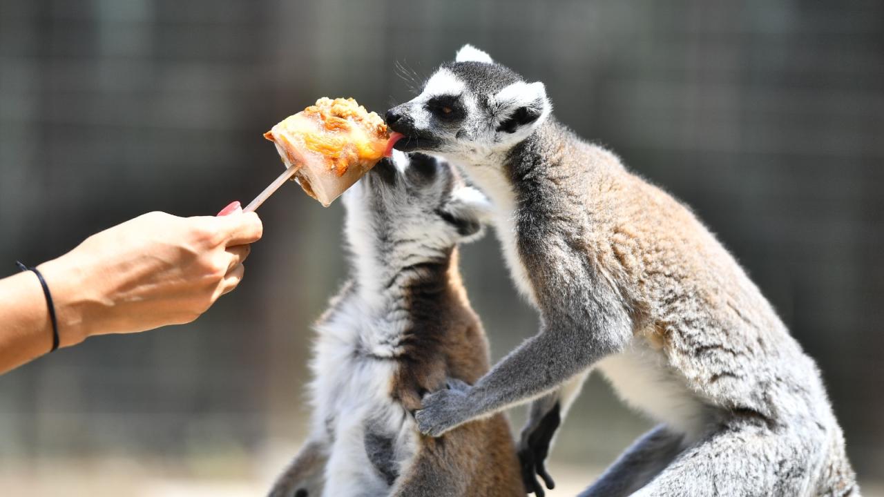 Buz kalıplarında dondurulan meyveler, park sakinlerinin serinlemesi için alternatif olarak sunuluyor. Halka kuyruklu lemurlar için fındık, dut, kayısı ve badem gibi besinler buz kalıplarında dondurularak servis ediliyor. Park sakinleri, buzlu meyveleri yiyerek serinliyor.