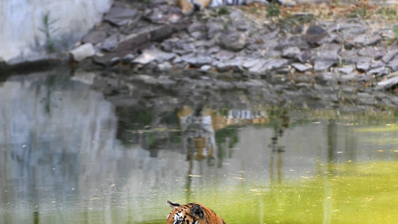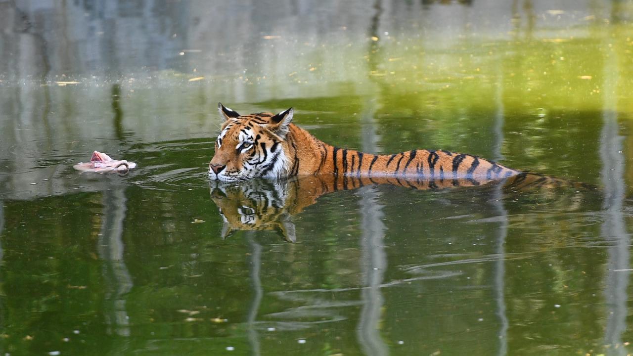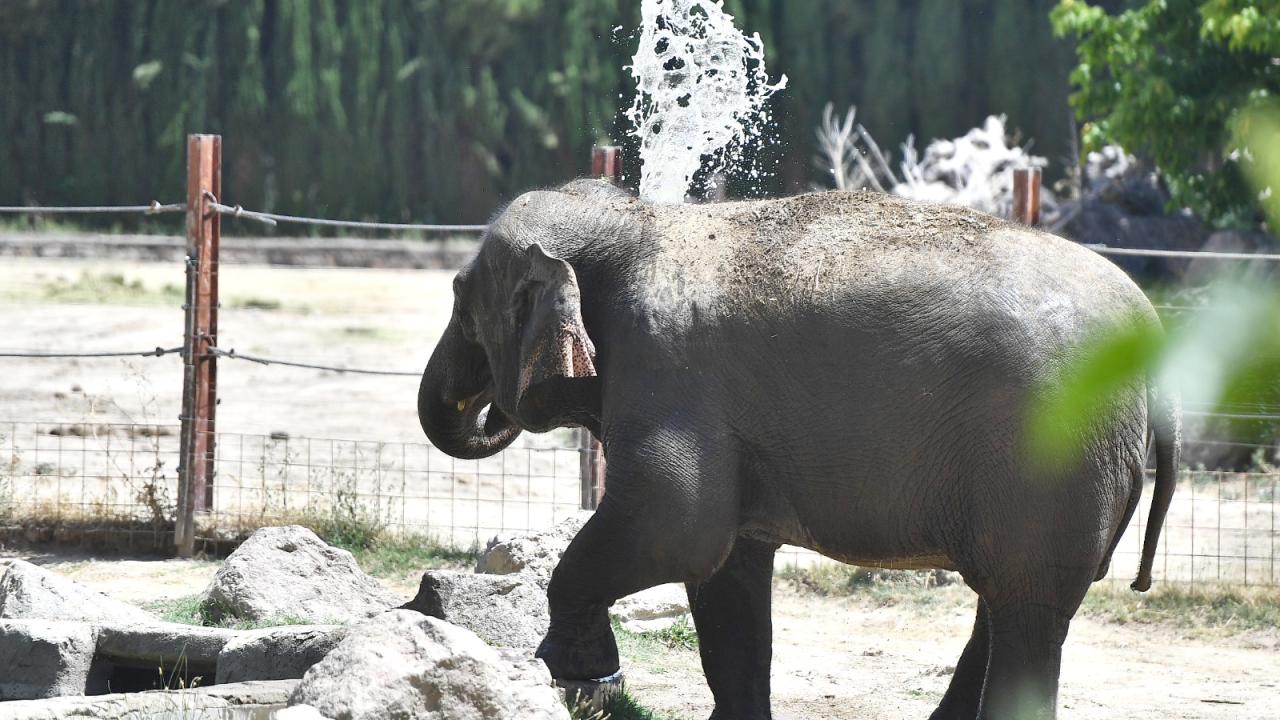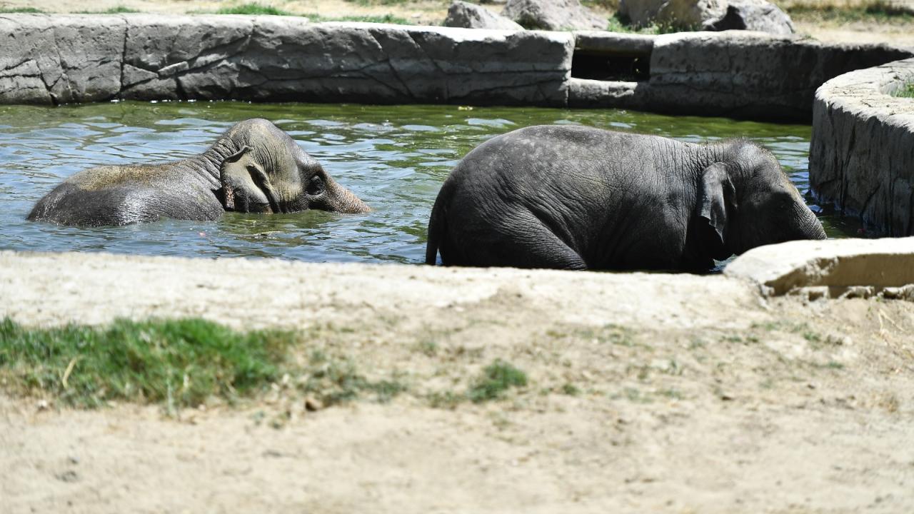 Park sakinlerinden kimileri gölgelik alanda vakit geçirirken bazıları ise havuzlarda serinliyor. Fil ailesi de sıcak havalarda havuzu tercih ediyor. Havuzdan hortumlarıyla aldıkları suyu vücutlarına serpen filler, böylece yüksek sıcaklıklardan kendilerini koruyor.