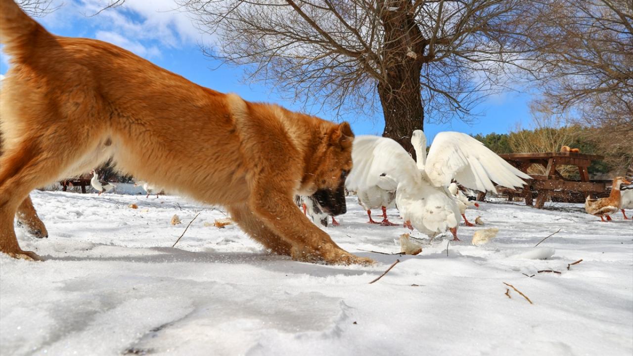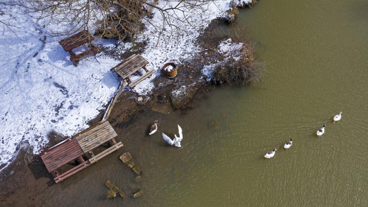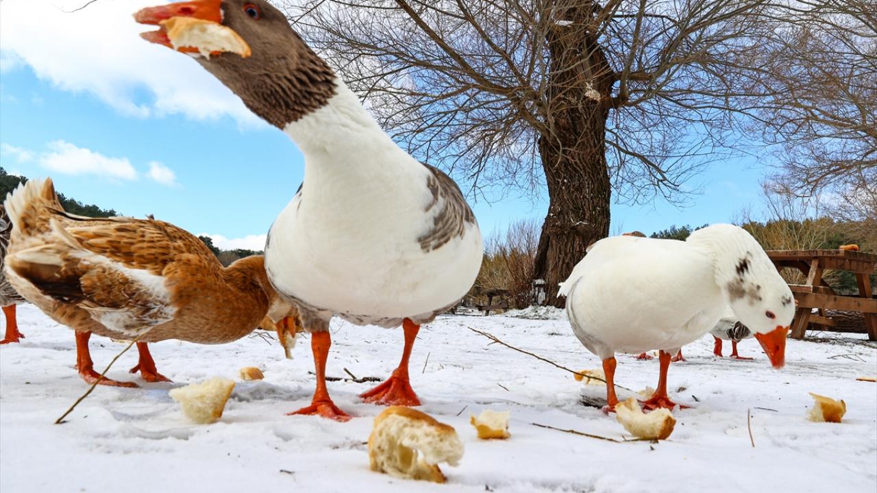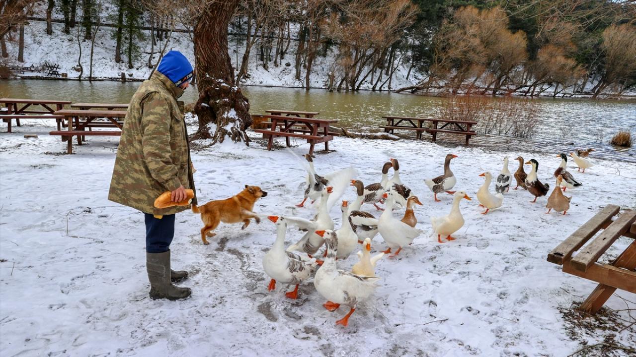 Karagöl`de yüzen kaz ve ördeklere ise buradaki görevliler tarafından yiyecek veriliyor.