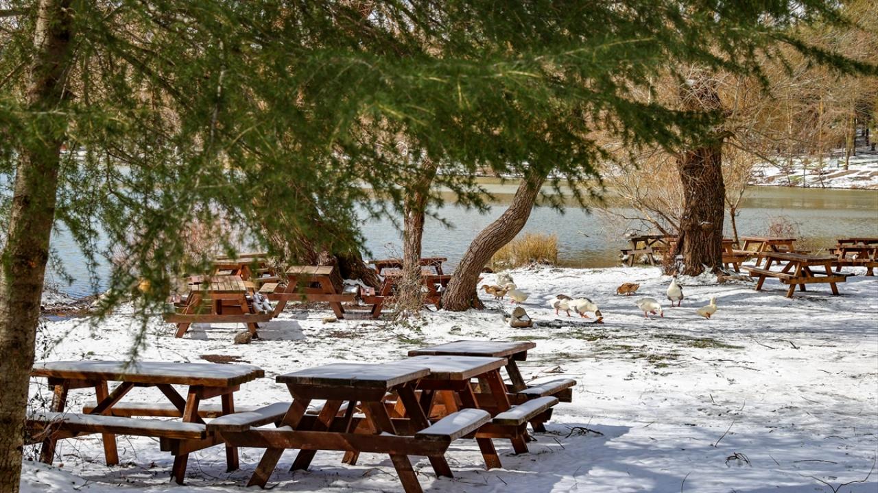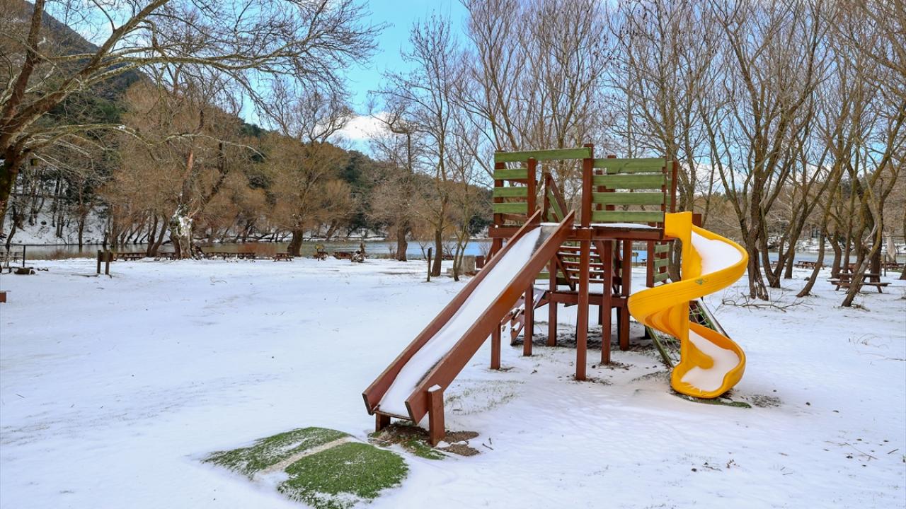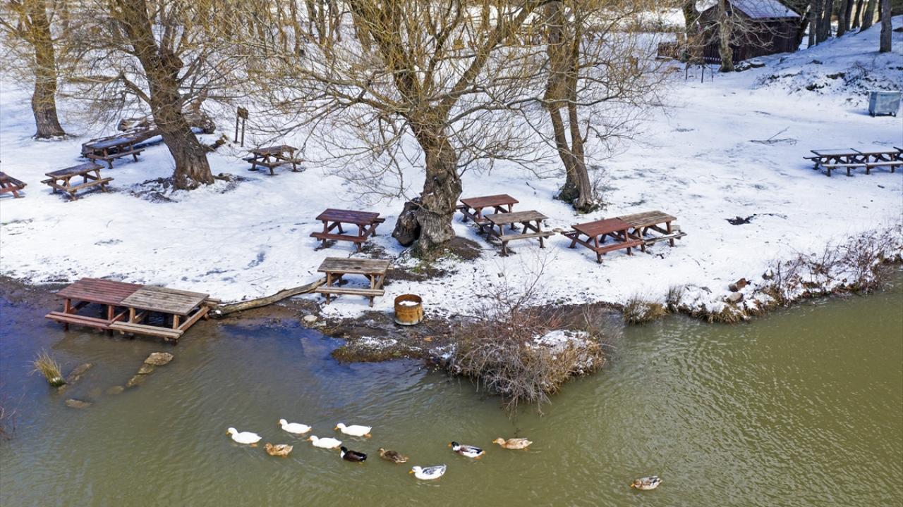 Deniz seviyesinden 850 metre yükseklikteki tabiat parkı içerisindeki Karagöl`ün çevresindeki kızılçam, karaçam ve söğüt ağaçlarının karla kaplanan görüntüsü ziyaretçilerin de ilgisini çekti.