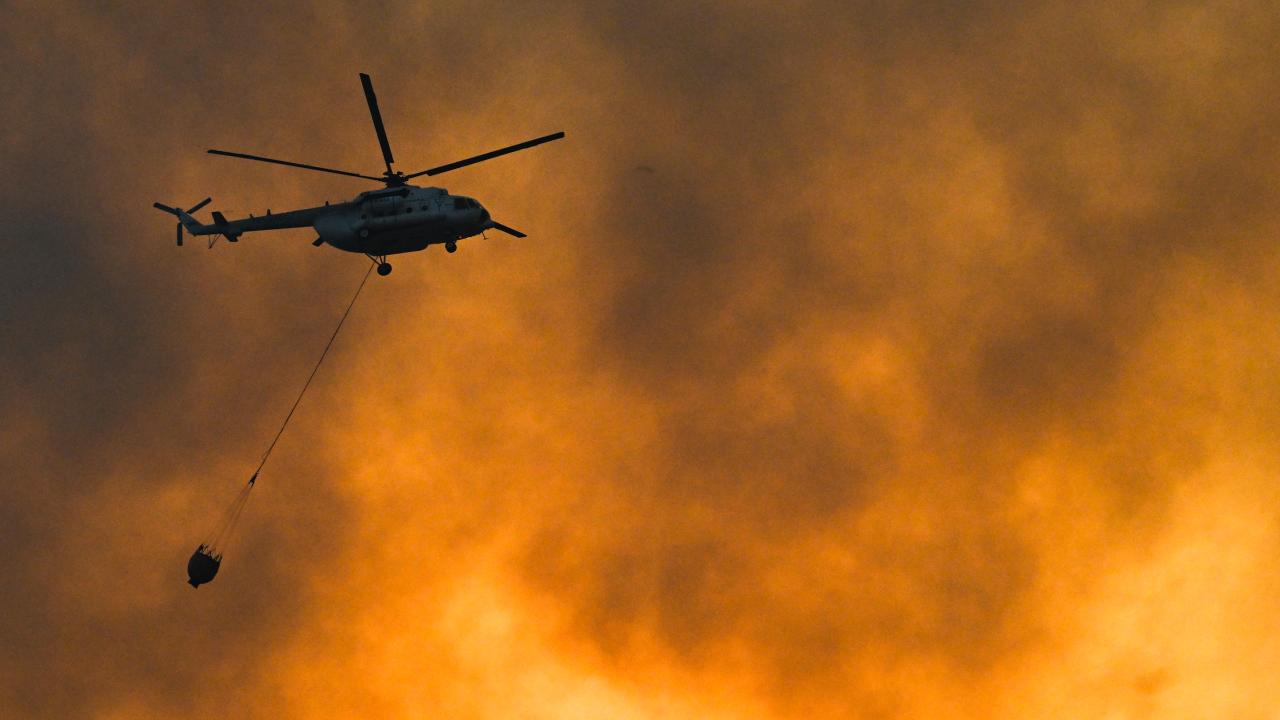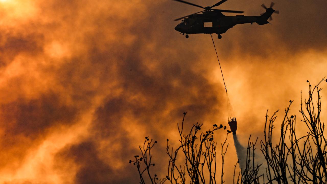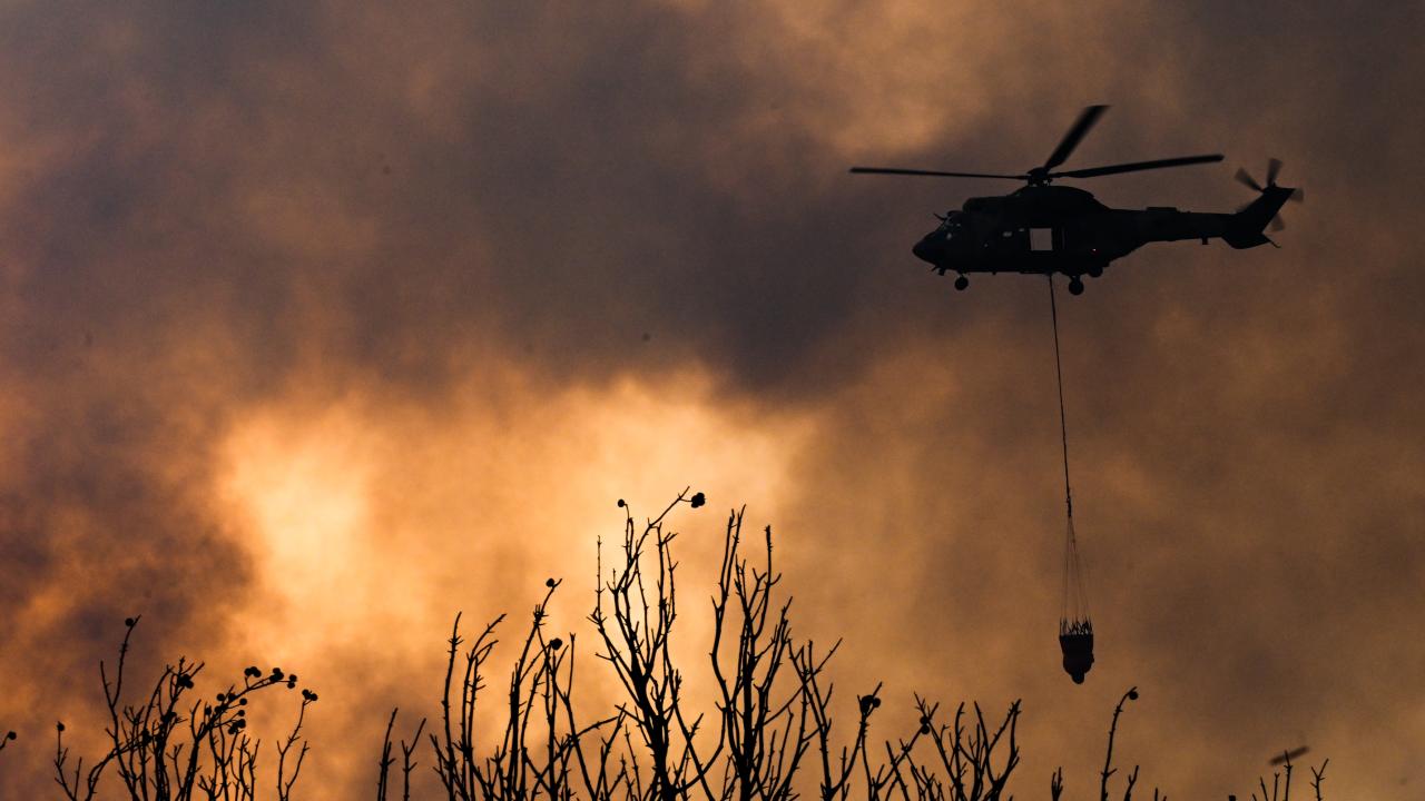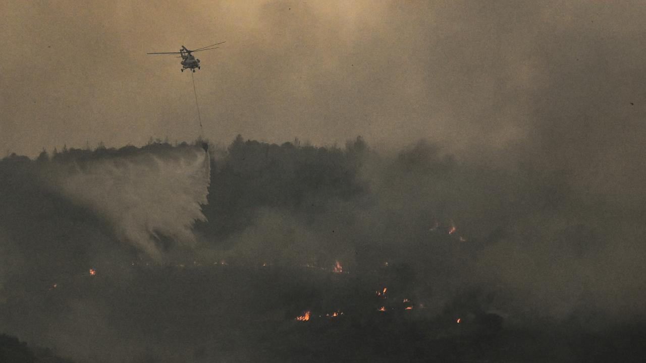 15 helikopter, 7 uçak, 50 arazöz, 20 su ikmal aracı ve 7 dozerle müdahale edilen yangının yayılımının durdurulmasına çalışılıyor.