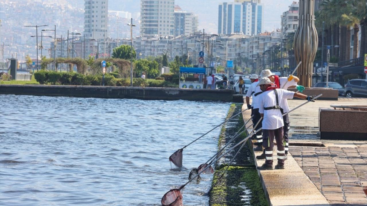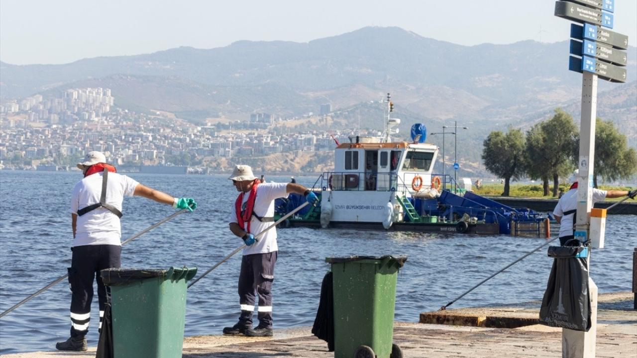 İzmir Büyükşehir Belediyesinden yapılan açıklamada, süpürge gemileriyle körfezde her gün temizlik çalışmaları yapıldığı belirtildi.