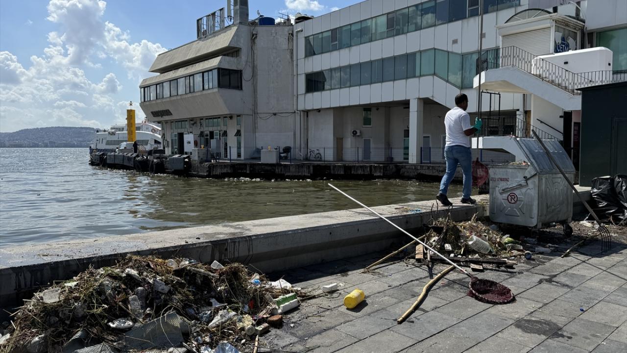 Dün kentte etkili olan sağanağın ardından körfeze dökülen derelerden geldiği tahmin edilen atıklar, sahil boyunda kötü görüntülere neden oldu.