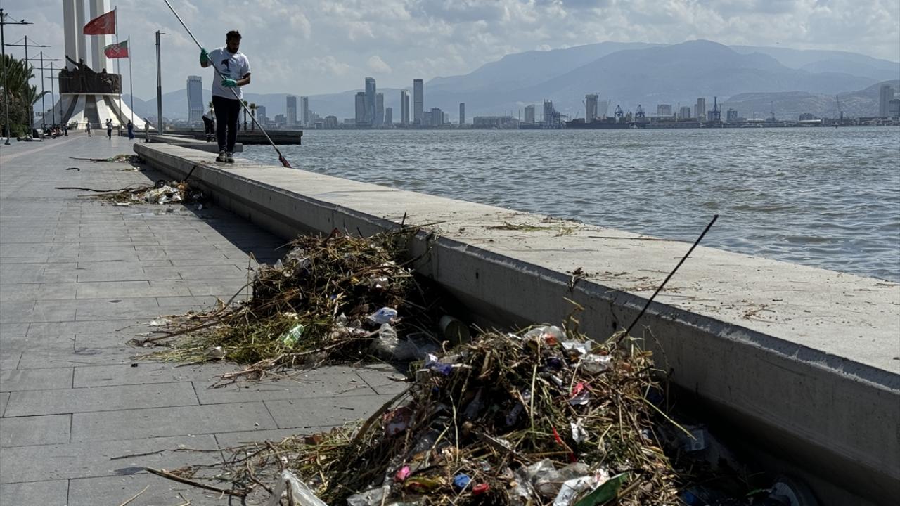 İzmir Büyükşehir Belediyesi ekipleri, denizden ve karadan atıkların toplanması için çalışma yürüttü.