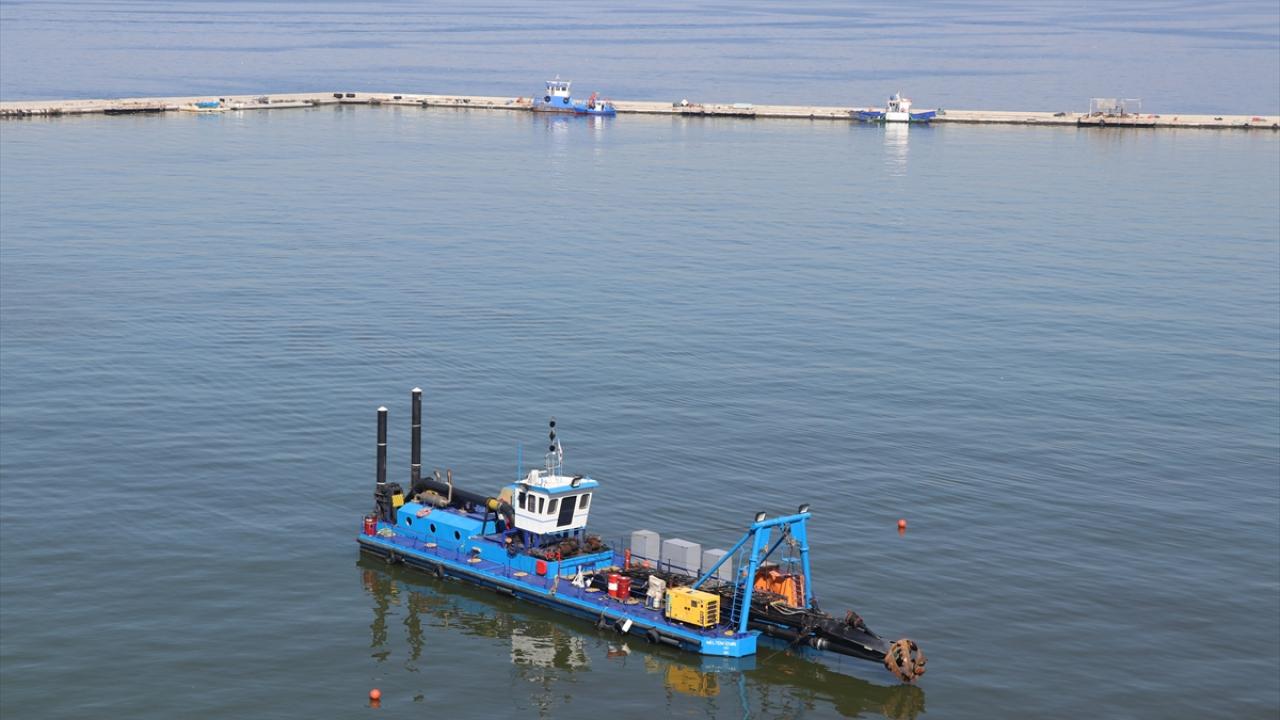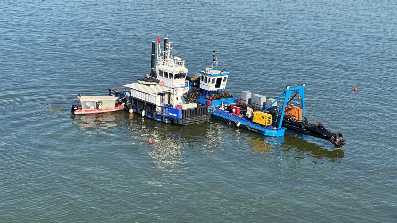 Körfezde deniz dibi taramasında kullanılan Meltem İzmir gemisi, pompalarla denizden çektiği suyu püskürterek oksijen oranını artırmaya çalışıyor.